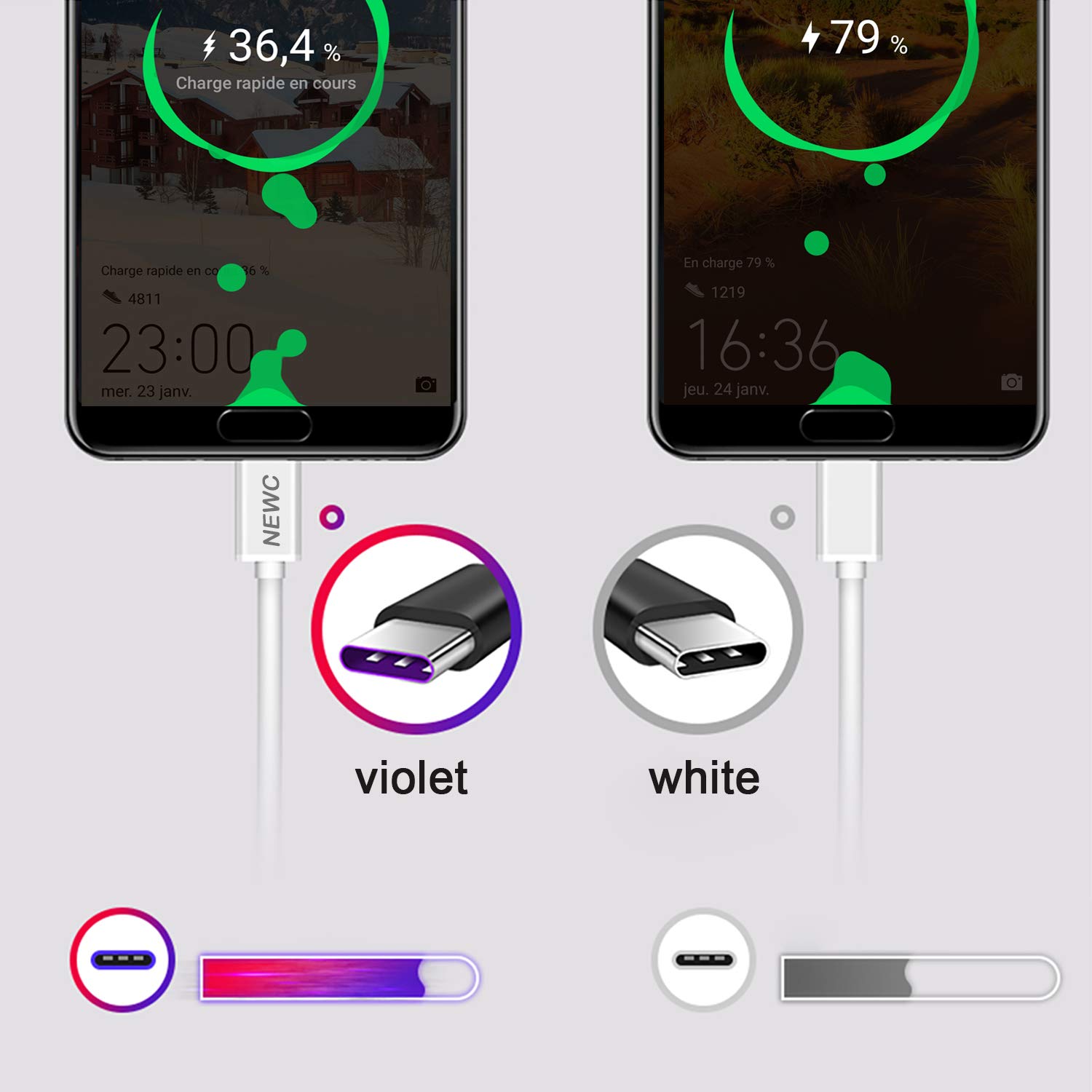 • [Porfitez Super Charger même pour Huawei] Profitez de la vitesse de transfert et de la synchronisation Très Rapide de 5 Gbps avec des périphériques USB 3.0, qui est 10 fois plus rapide que USB 2.0 (480 Mbps). Il supporte 5A de charge en sécurité, vous permettant de recharger vos appareils plus rapidement que jamais! (Le câble pourrait supporter la Super Charge de Huawei Si vous dispose un charger secteur d’origine Huawei)