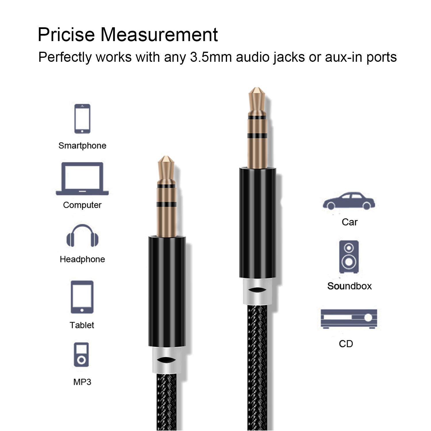 Câble audio auxiliaire 3,5mm en nylon tressé pour une connectivité universelle avec iPhone, Samsung, Huawei, iPod, iPad et plus.