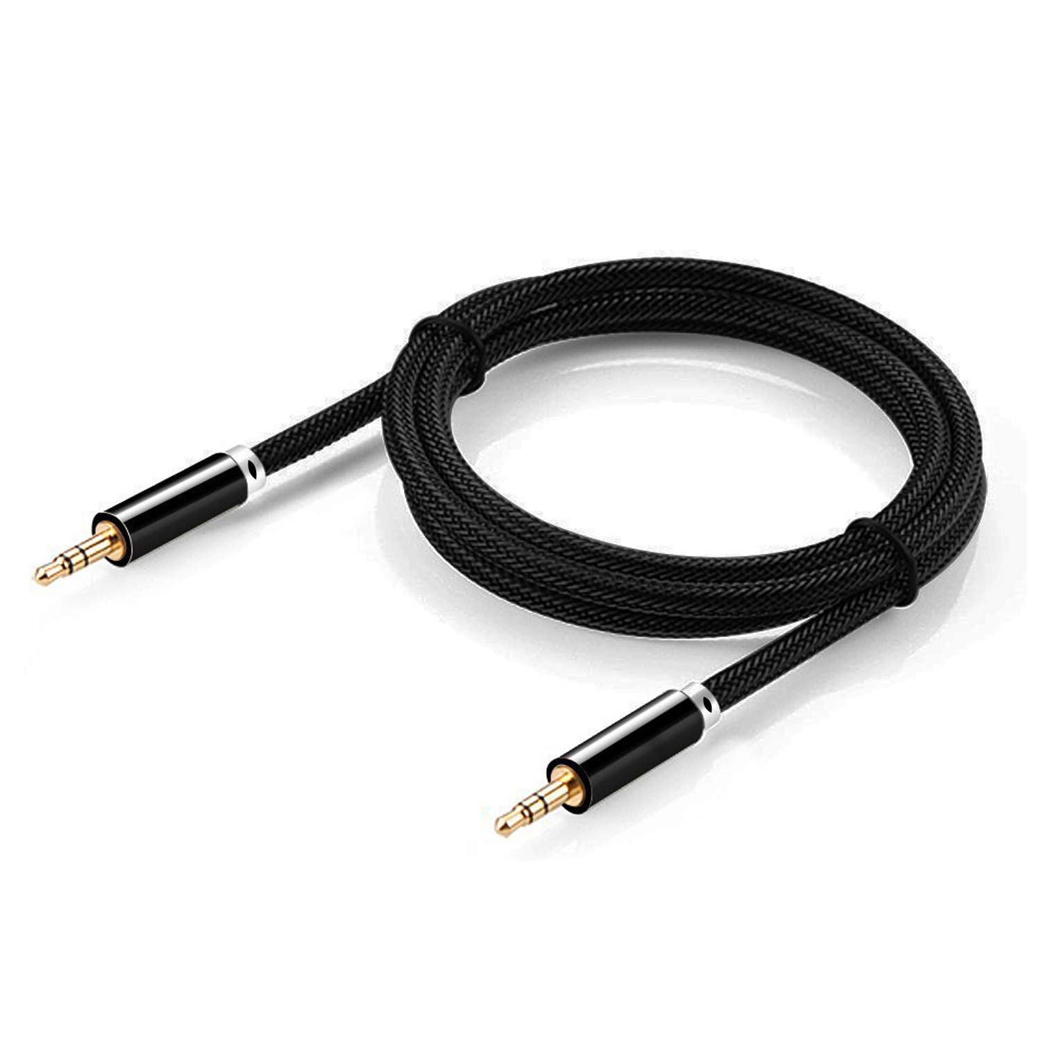 NEW’C Câble Jack Audio 3,5mm, Câble Auxiliaire 3.5mm mâle vers mâle en Nylon Tressé pour Casque, iPhone/Samsung/Huawei/iPod/Enceinte 2m Noir