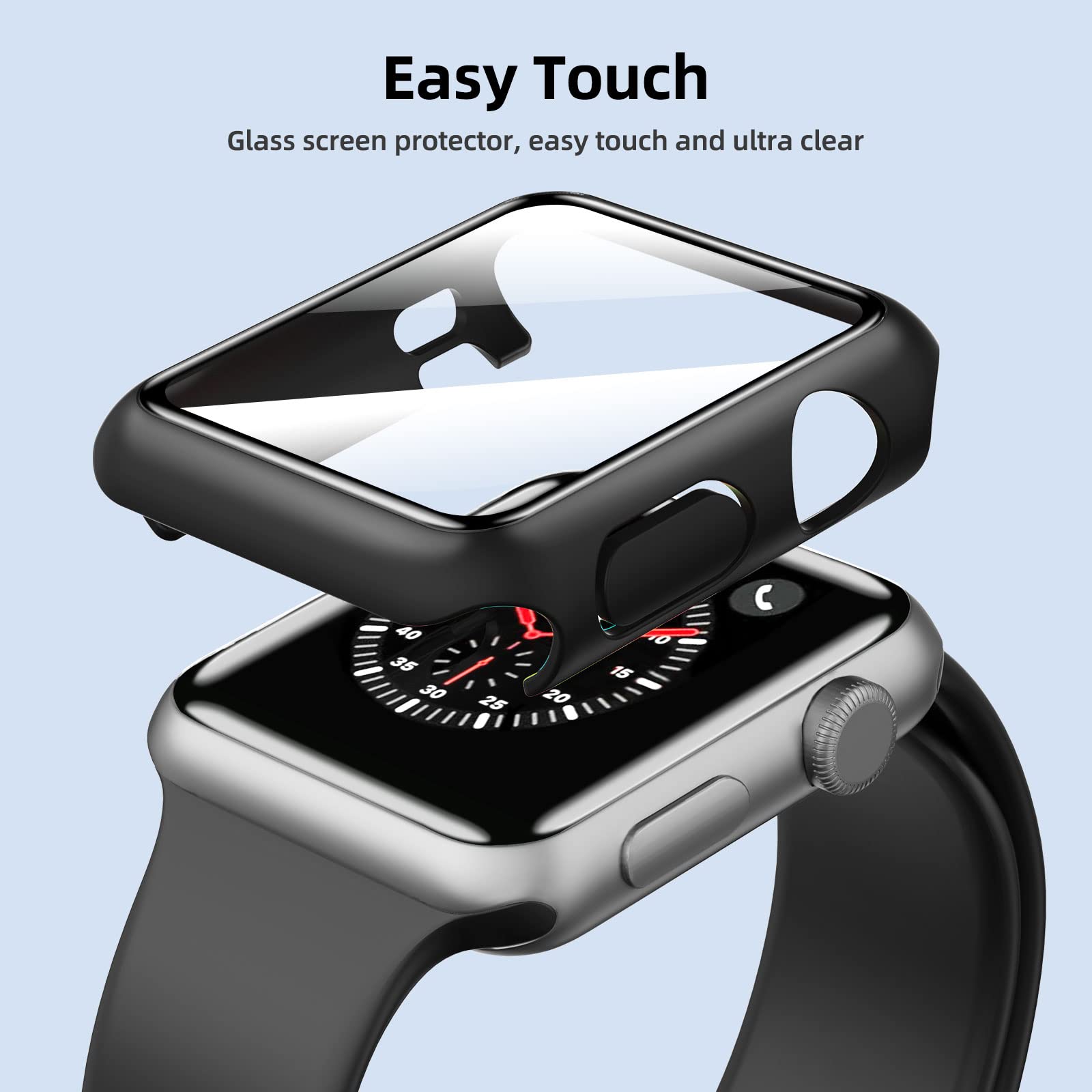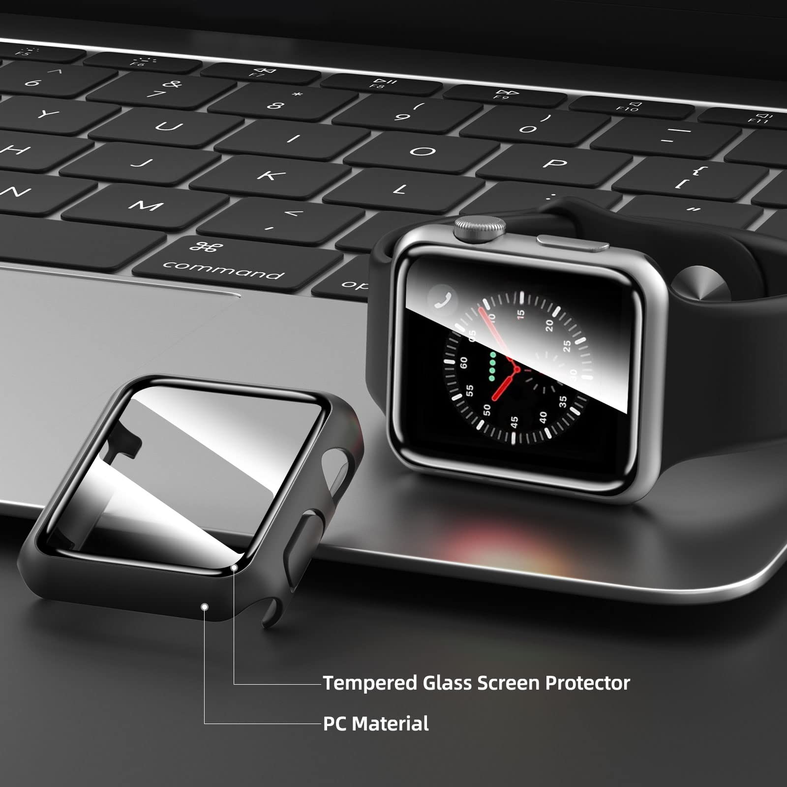 - Le lot contient 2 pièces de coque noir avec protection d’écran en verre trempé intégré pour Apple Watch 42mm Serie 3 2 1. Procurez une protection complète.