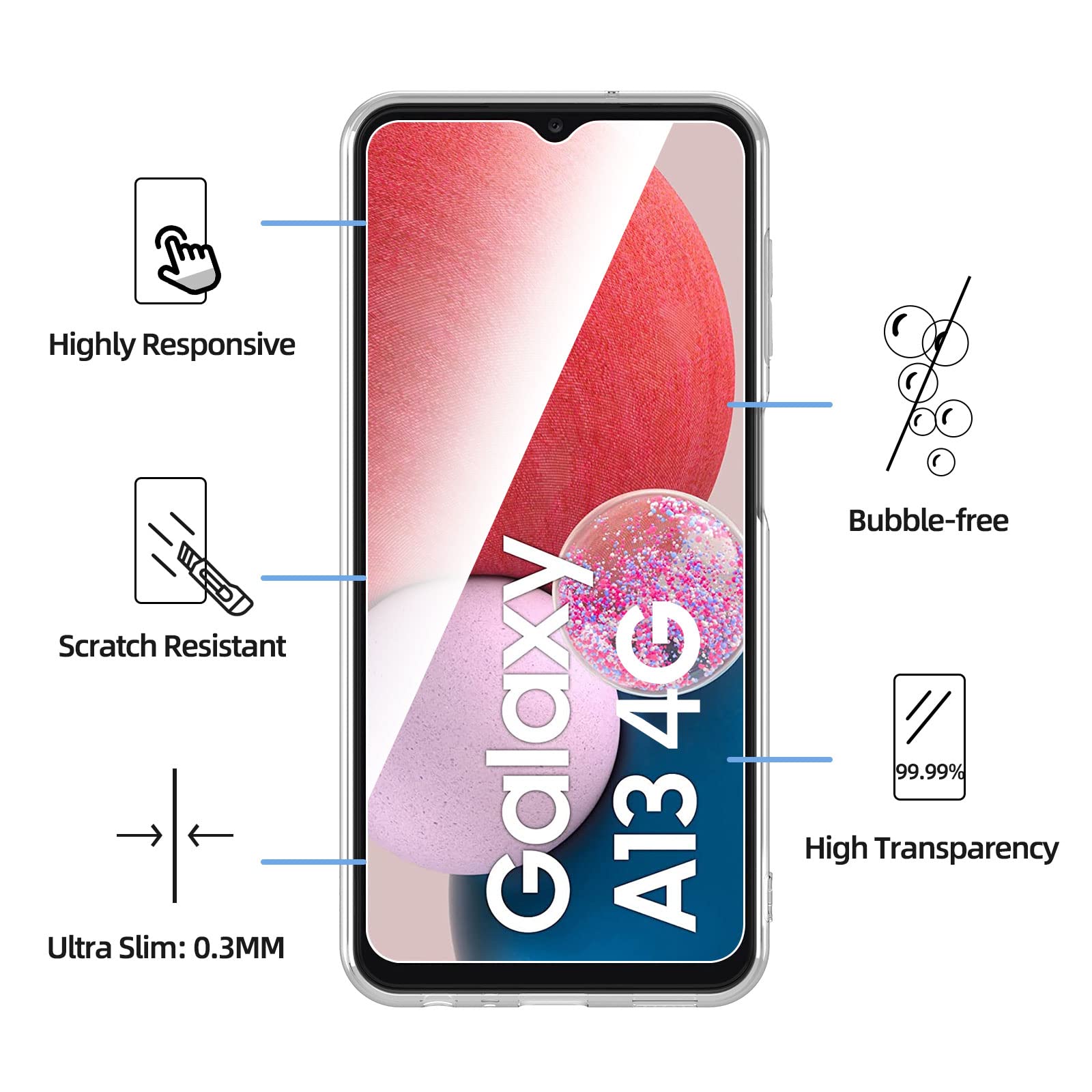 - Le lot contient 2 pièces de protection d’écran en verre trempé pour Samsung Galaxy A13 4G et une coque transparente pour Samsung Galaxy A13 4G. Procure une protection maximale.
