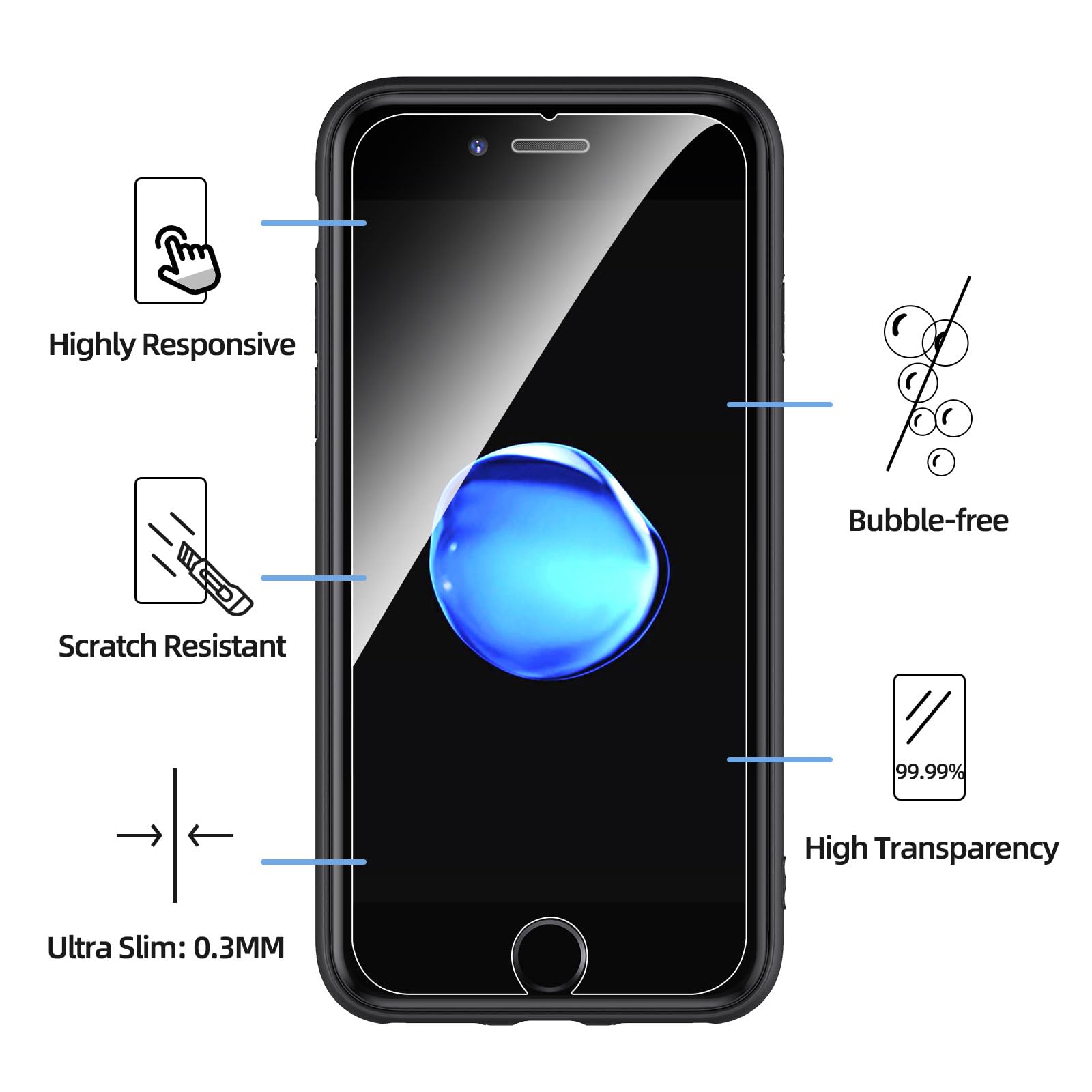 - Le lot contient 2 pièces de protection d’écran en verre trempé pour iPhone 7 / 8 / SE 2022 et une coque noir pour iPhone 7, iPhone 8 . Procure une protection maximale.