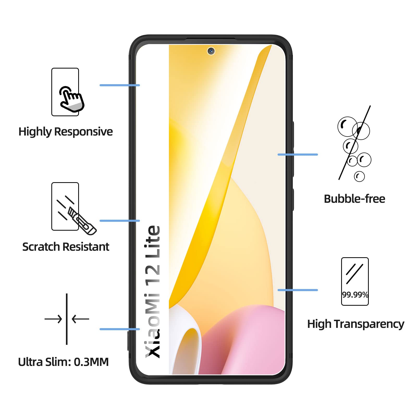 En complément, le lot comprend deux protections d’écran en verre trempé spécialement conçues pour le Xiaomi 12 Lite. Avec une épaisseur de seulement 0,33 mm, ces films de protection offrent une transparence et une réactivité exceptionnelles, garantissant une expérience tactile fluide et sans compromis. Dotés d’une dureté de 9H, ils protègent efficacement l’écran de votre téléphone contre les chocs et les rayures accidentelles, tout en conservant une clarté d’image optimale.