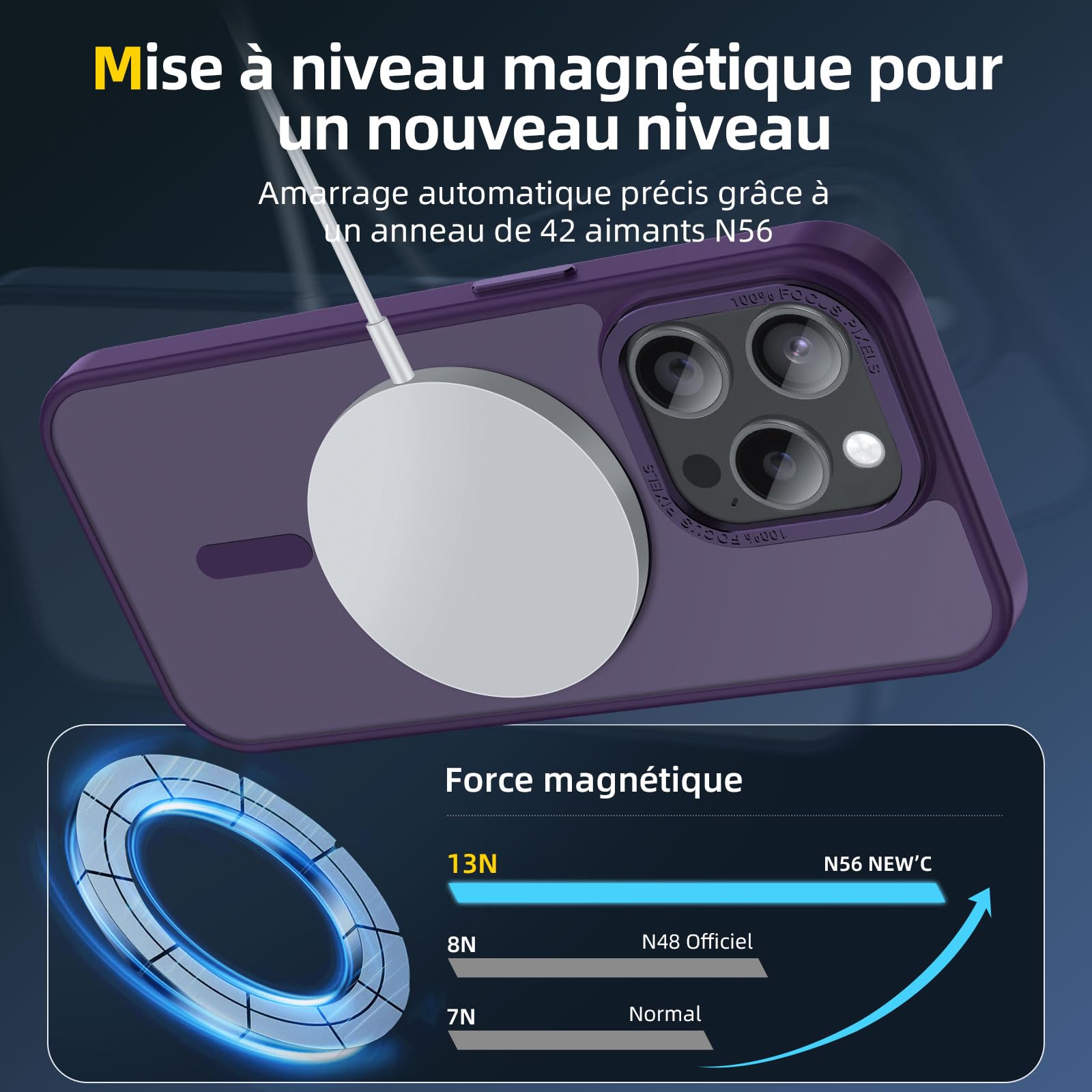 - Verrouillage magnétique ultra-puissant: Équipée de 42 aimants N56 de haute performance, cette coque offre une puissance magnétique augmentée de 50%, assurant une fixation stable et rapide de votre iPhone 13 Pro (6,1 Pouces) avec les accessoires compatibles MagSafe, même sur les routes les plus accidentées.