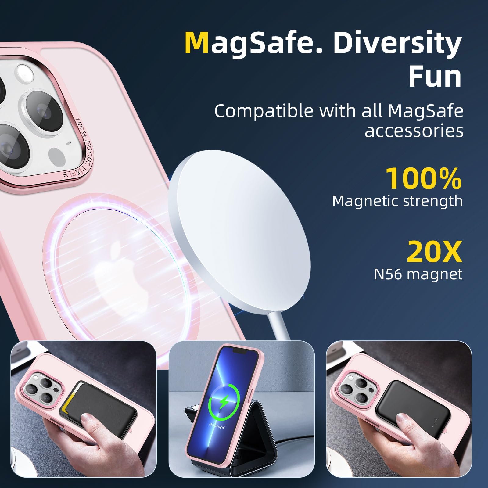 • Verrouillage magnétique ultra-puissant: Équipée de 42 aimants N56 de haute performance, cette coque offre une puissance magnétique augmentée de 50%, assurant une fixation stable et rapide de votre iPhone 13 Pro Max (6,7 Pouces) avec les accessoires compatibles MagSafe, même sur les routes les plus accidentées.