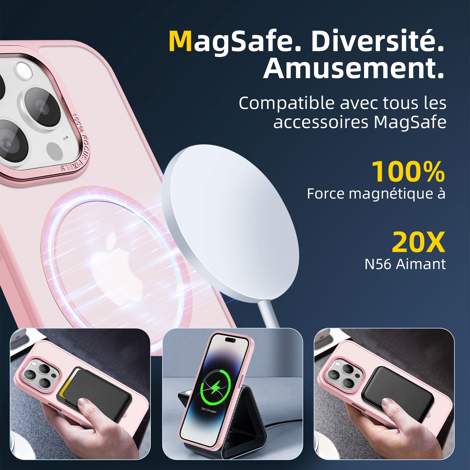 Coque magnétique pour iPhone 14 Pro avec compatibilité MagSafe, protection antichoc militaire, et finition anti-traces.