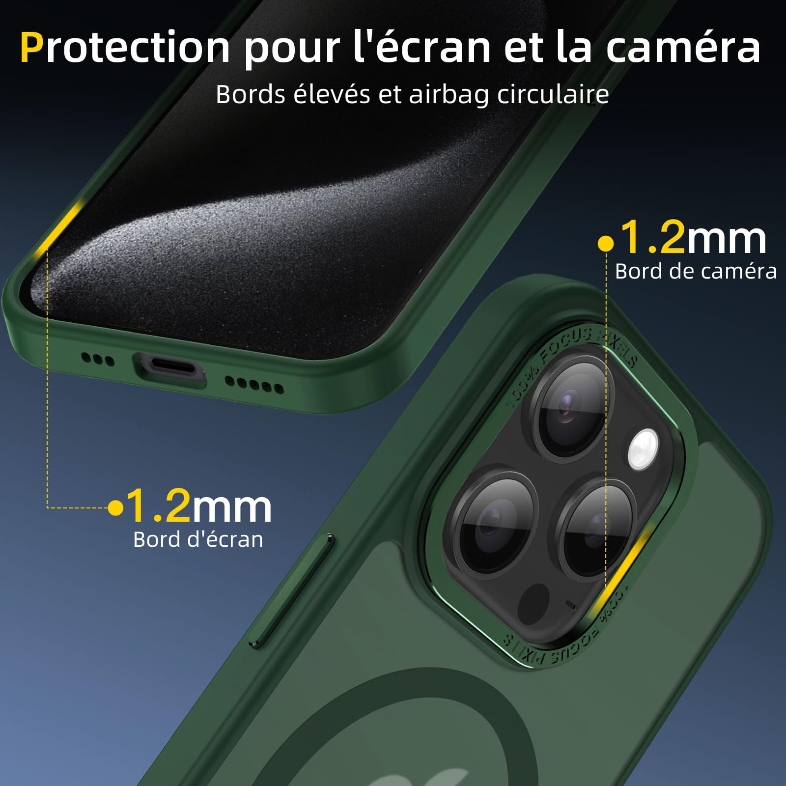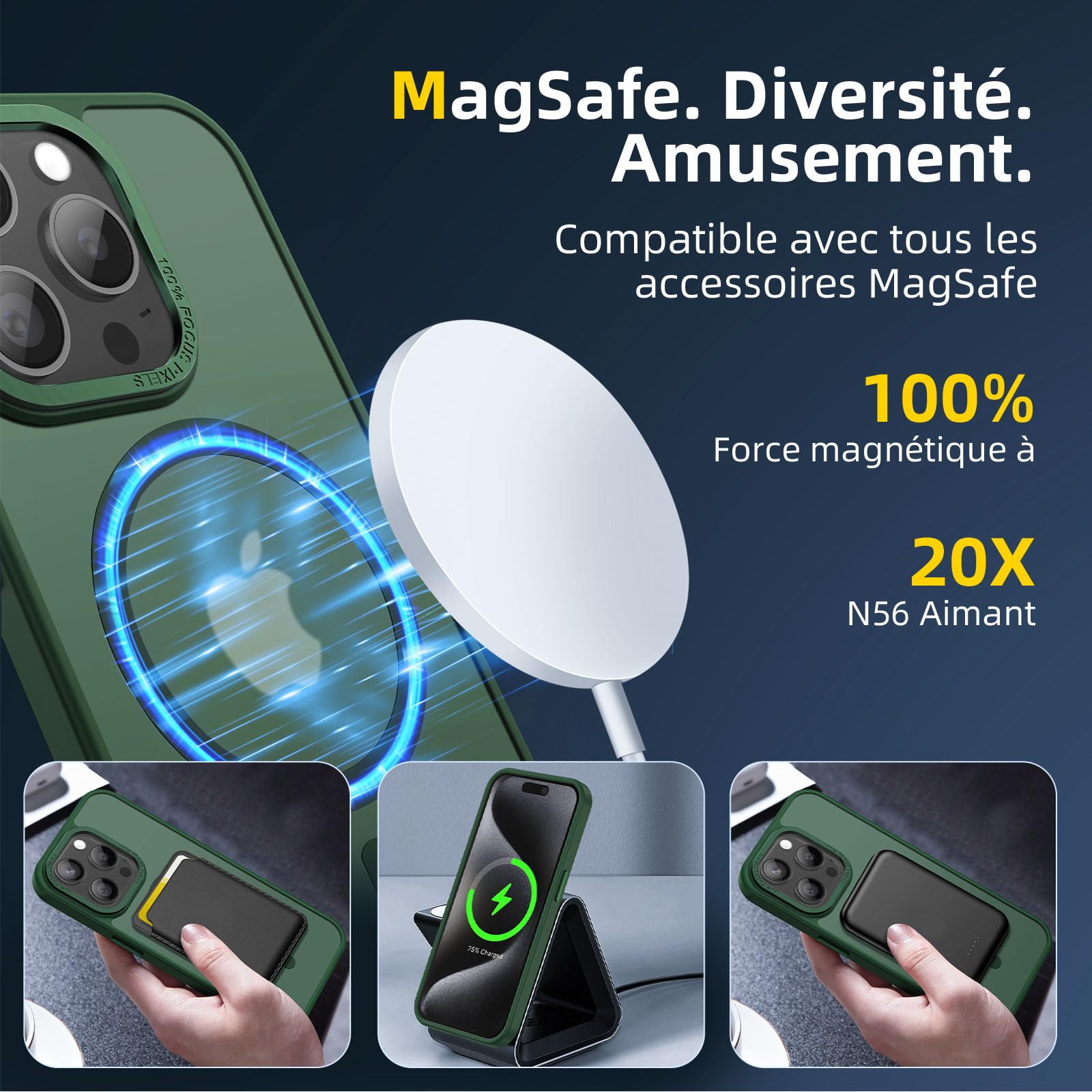 - Verrouillage magnétique ultra-puissant : Équipée de 42 aimants N56 de haute performance, cette coque offre une puissance magnétique augmentée de 50%, assurant une fixation stable et rapide de votre iPhone 15 Pro (6,1 Pouces) avec les accessoires MagSafe, même sur les routes les plus accidentées.