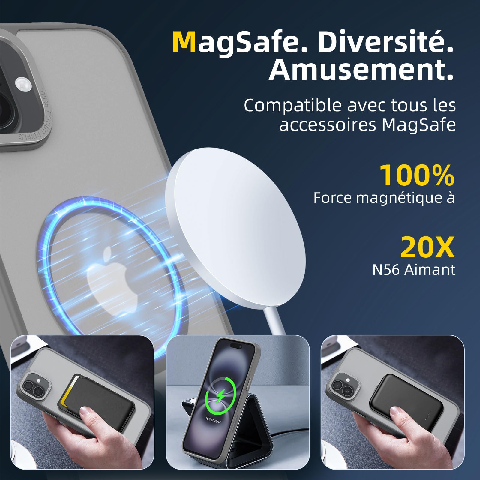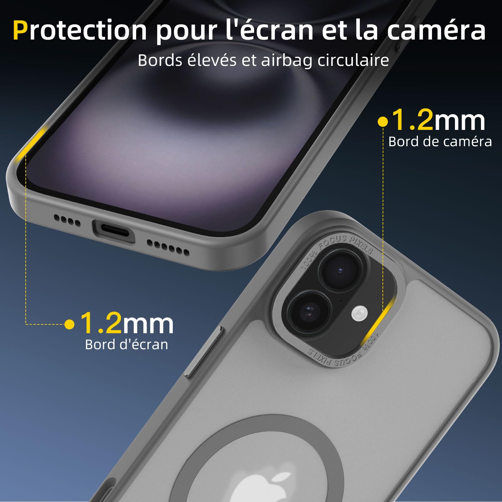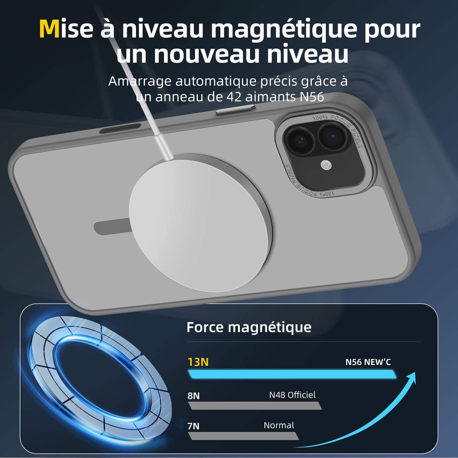- Verrouillage magnétique ultra-puissant: Équipée de 42 aimants N56 de haute performance, cette coque offre une puissance magnétique augmentée de 50%, assurant une fixation stable et rapide de votre iPhone 16 Plus (6,7 Pouces) avec les accessoires compatibles MagSafe, même sur les routes les plus accidentées.