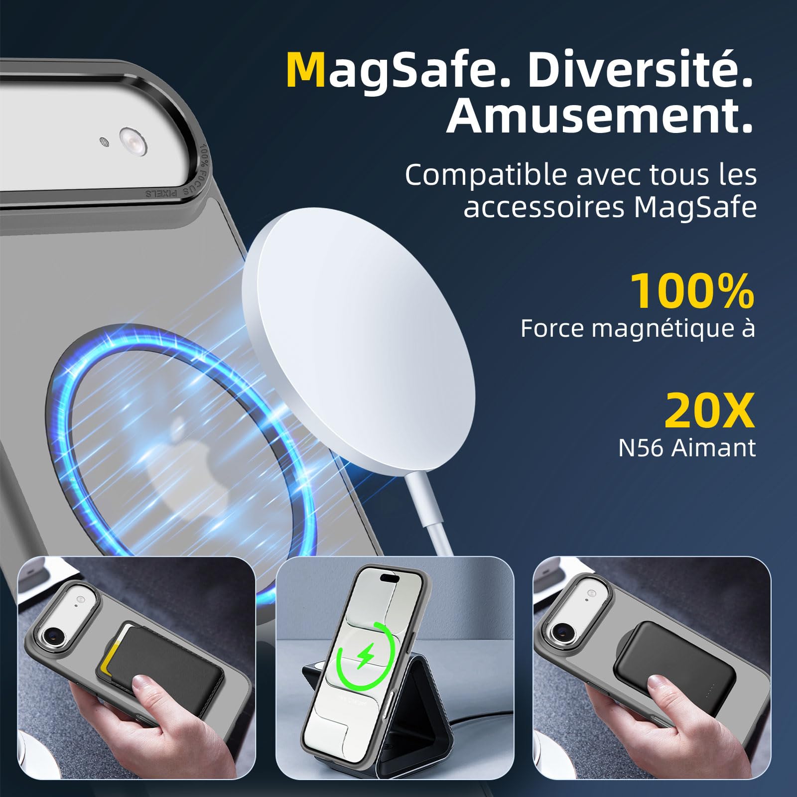 - Verrouillage magnétique ultra-puissant: Équipée de 42 aimants N56 de haute performance, cette coque offre une puissance magnétique augmentée de 50%, assurant une fixation stable et rapide de votre iPhone Air (6,5 Pouces) avec les accessoires compatibles MagSafe, même sur les routes les plus accidentées.