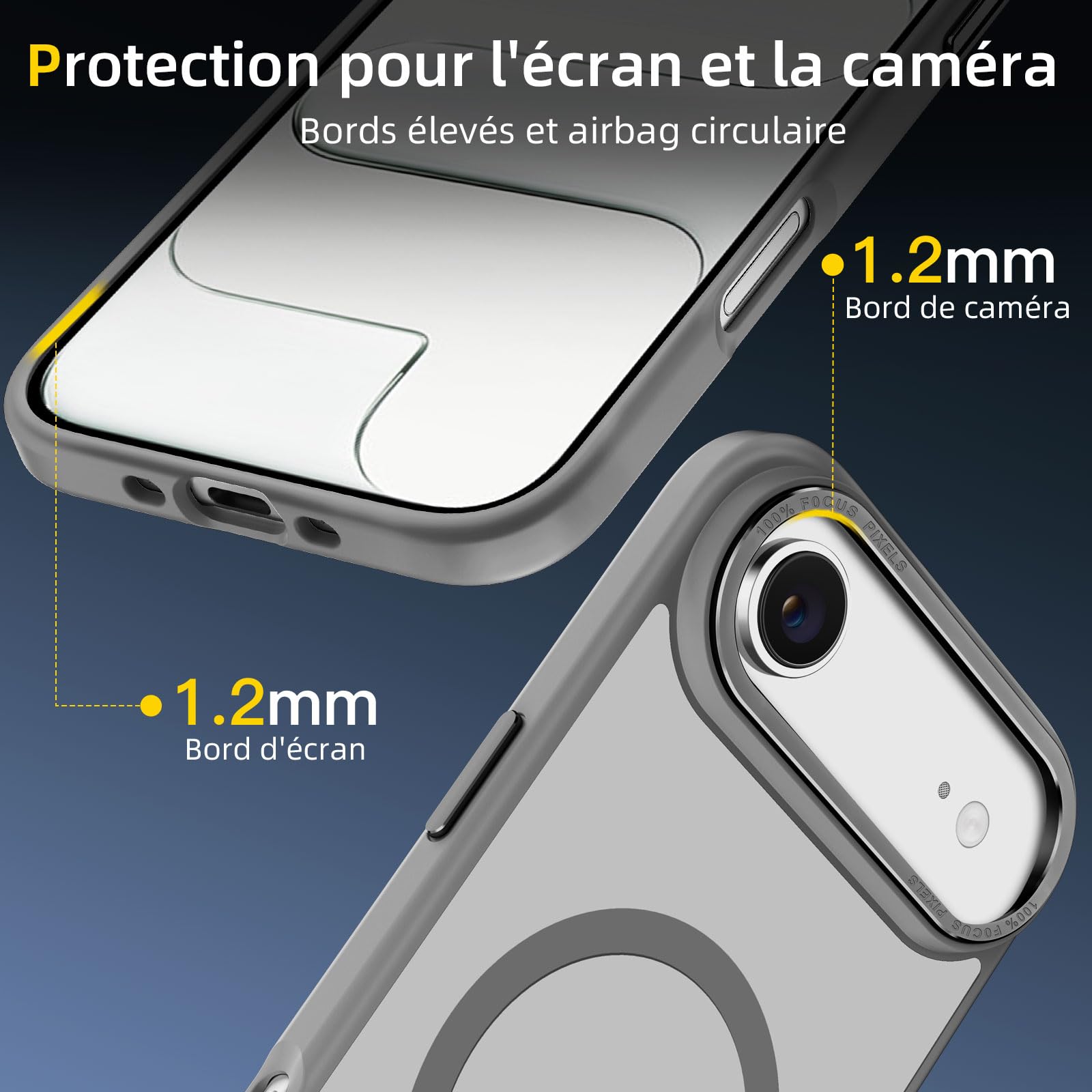 La protection de l’appareil photo est également assurée grâce aux rebords surélevés autour de l’écran et de l’objectif. Même lorsque votre iPhone Air est posé face contre terre, il est protégé contre les rayures et les chocs, garantissant une sécurité maximale.