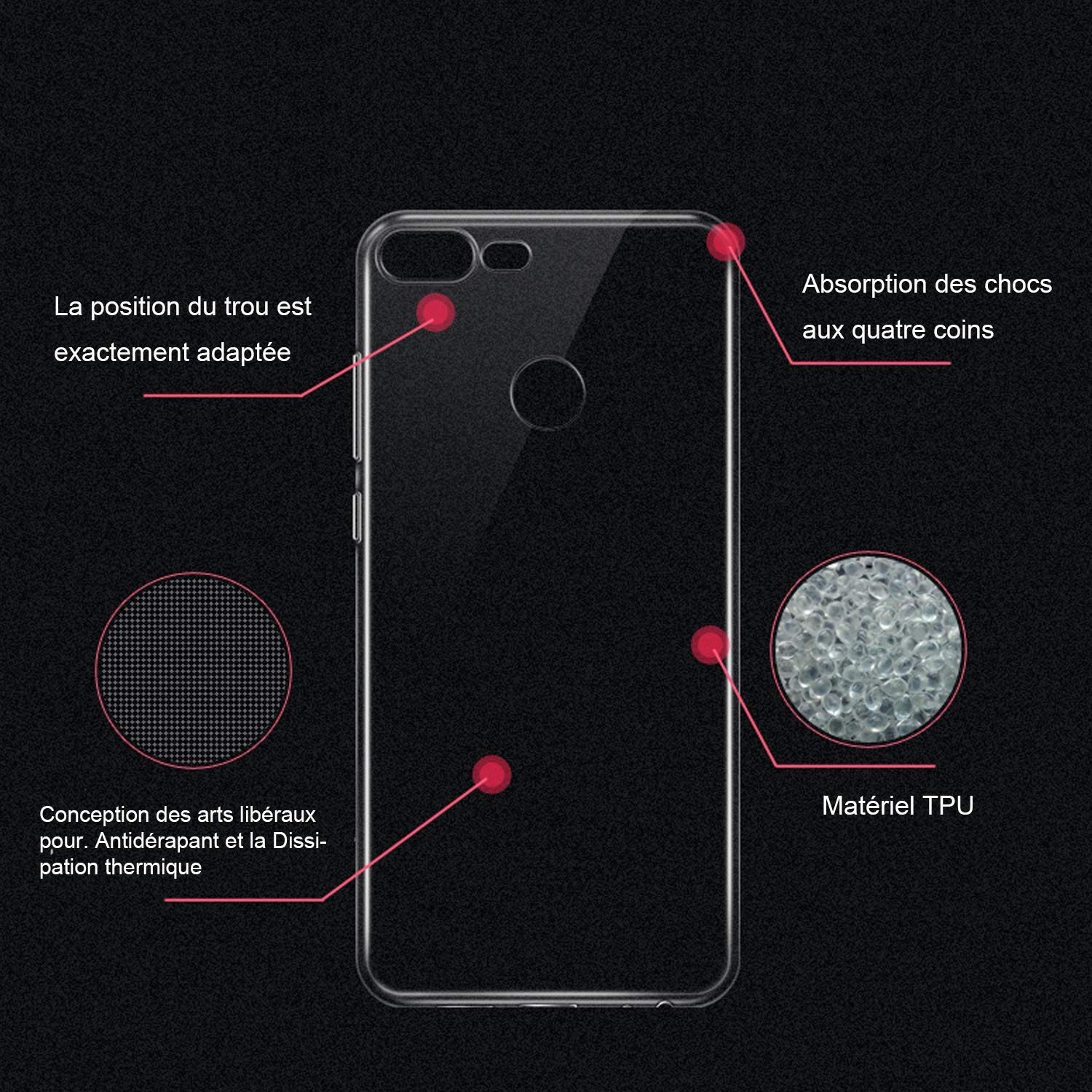 • Cette coque a été conçu spécialement pour Honor 9 Lite, afin de lui assurer une protection complete toute en discretion.