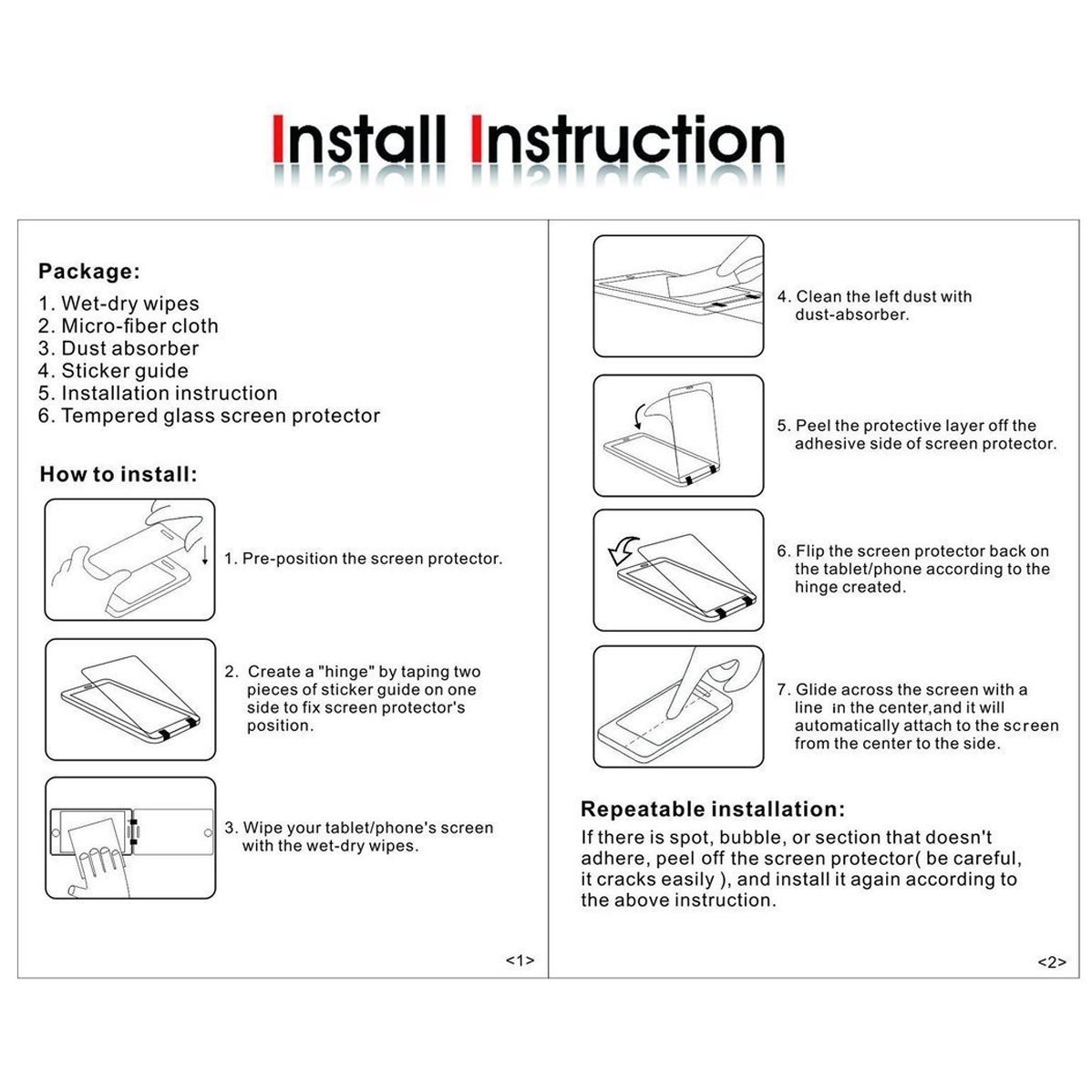 - Sans poussière, sans traces de doigts, un bouton-poussoir , trop facile l’installation, sans bulle.