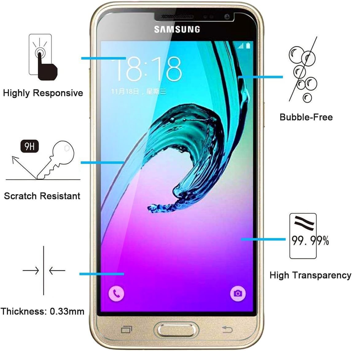 - ATTENTION: NON Compatible avec Samsung Galaxy J3 2016 et J3 2017 Fabriqué en verre trempé premium haute qualité avec 0,33 mm épaisseur avec les bordures arrondis, Solution idéale d’anti-casse: Extrêmement haute dureté, protège l’écran du téléphone des chocs et des dommages accidentels