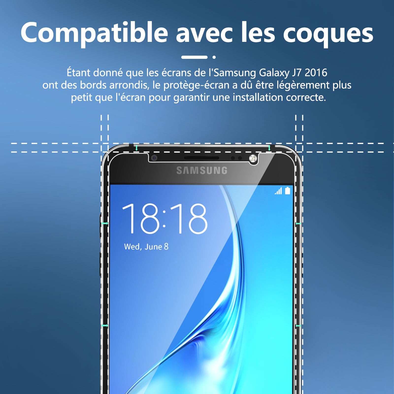 - Lot de 3 Verre Trempé Samsung Galaxy J7 2016, Très grande dureté: résiste aux égratignures jusqu’à 9H . Haute-réponse et une grande transparence.
