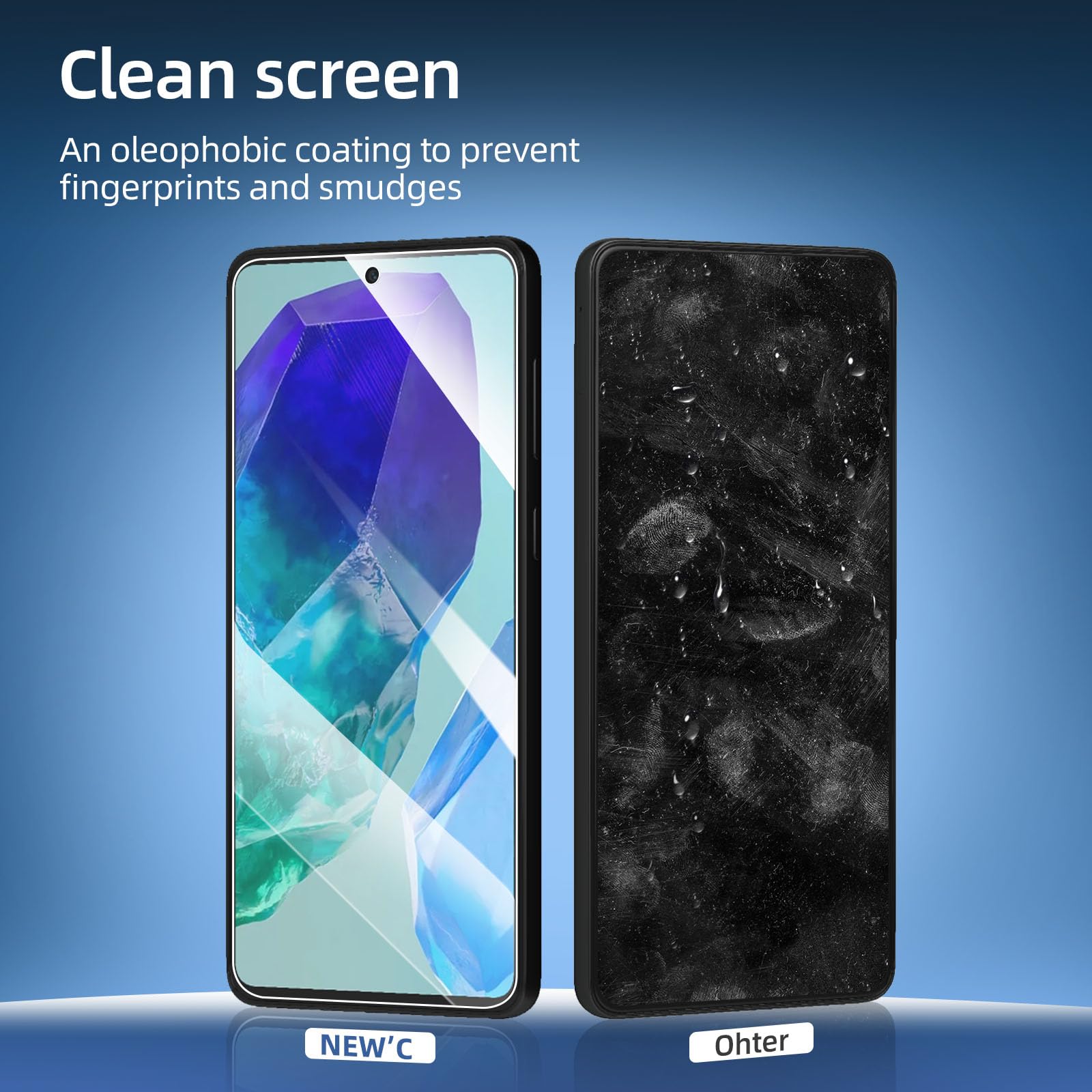 - NEW’C Protection écran en Verre Trempé Samsung Galaxy M55 5G, C55 5G. Sensibilité tactile conservée : un revêtement adhésif de silicium qui rend l’installation facile et durable tout en préservant les qualités tactiles du téléphone.