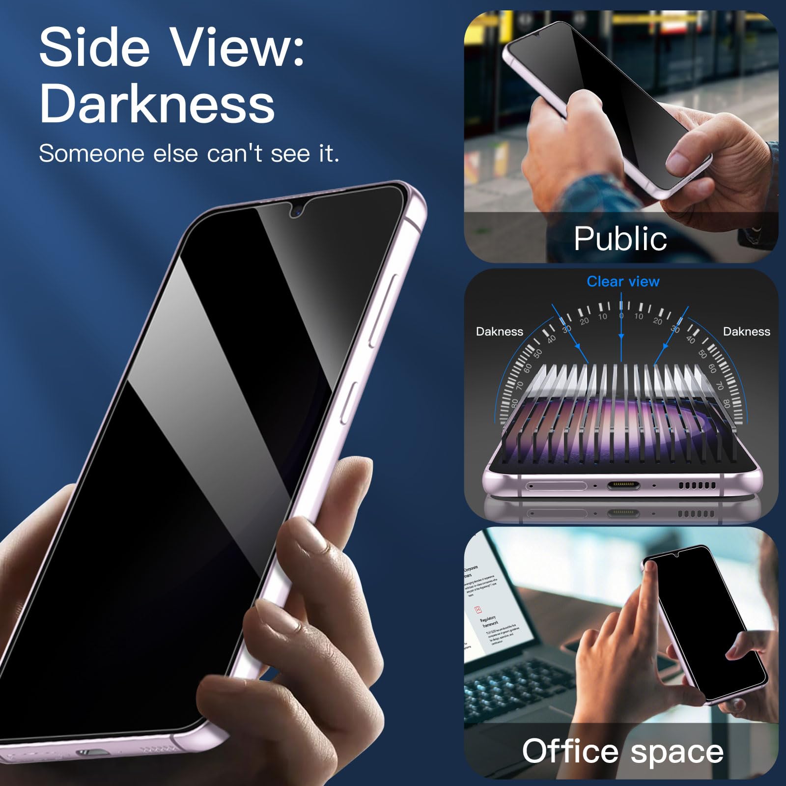 - Fournit une couche supplémentaire de protection de la vie privée: le filtre de confidentialité avancé bloque la visualisation sous n’importe quel angle supérieur à 35° pour garder ce qui est sur l’écran de votre Samsung Galaxy S23 pour vos yeux uniquement