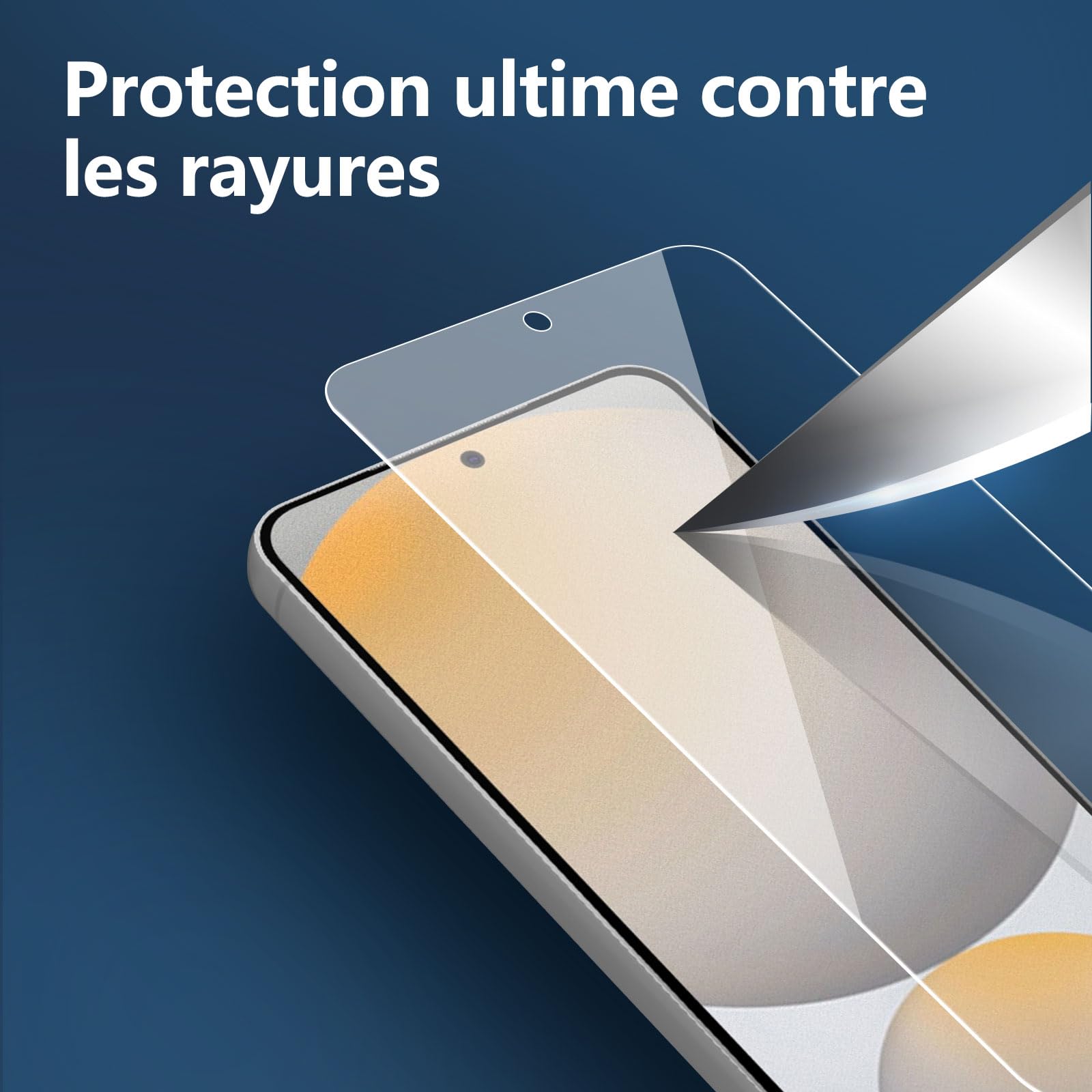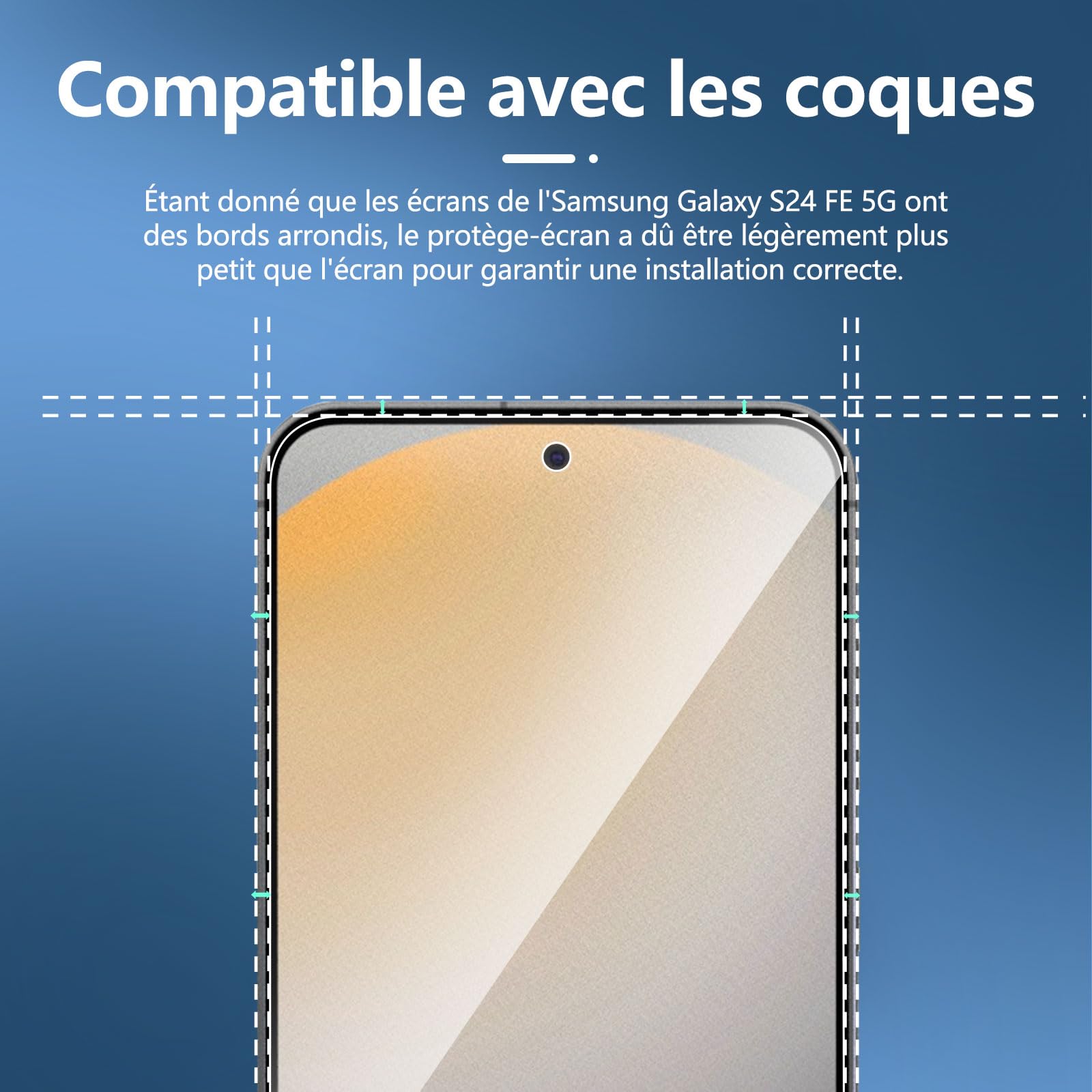 - NEW’C Protection d’écran en Verre Trempé Samsung Galaxy S24 FE 5G.Touche délicate: il est revêtu sur le dos avec un adhésif de silicium solide qui rend l’installation facile et attache le film fermement afin de ne pas influer sur la sensibilité de l’écran tactile.