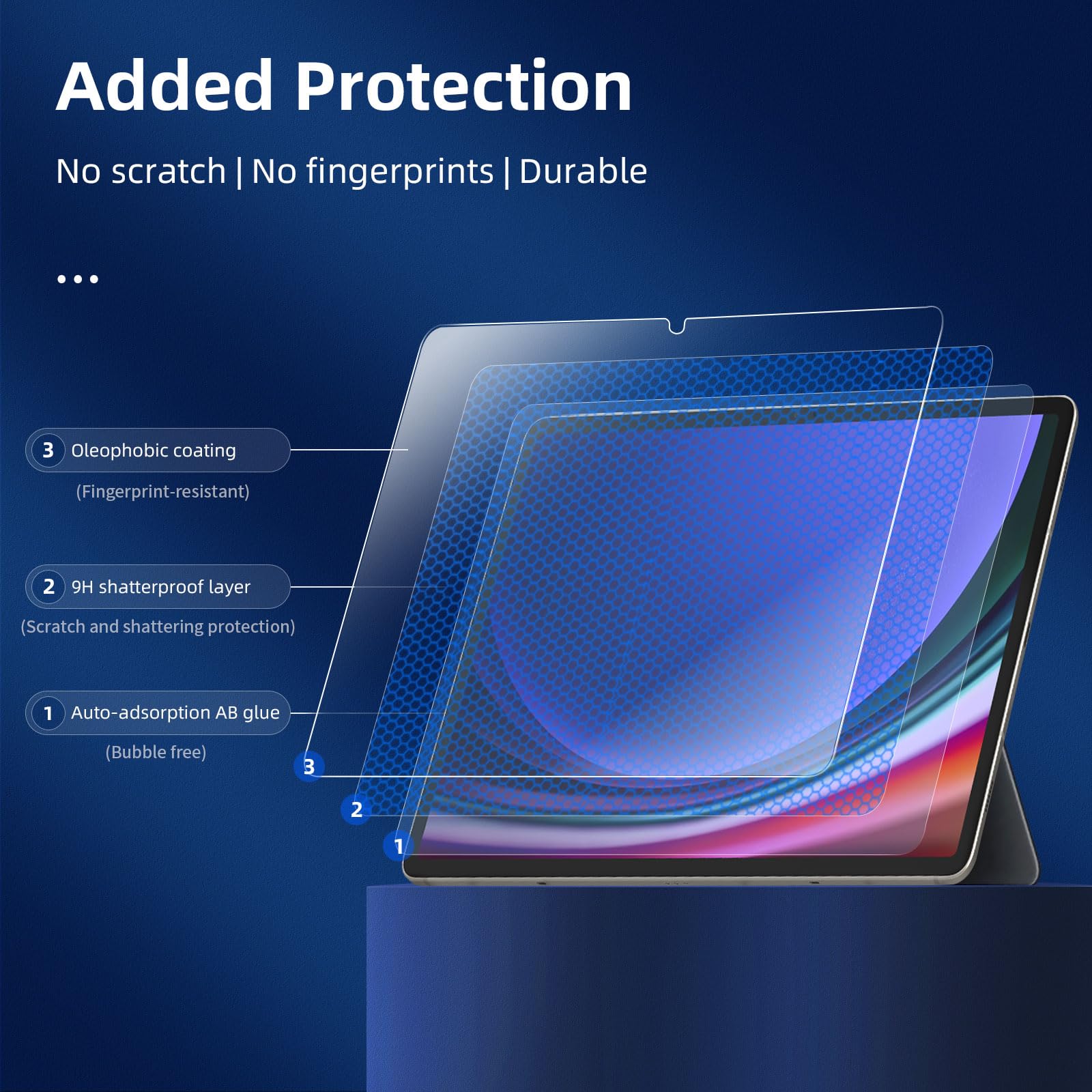 - Installation sans poussière, sans empreintes digitales, facile d’une simple pression, sans bulles. Oléophobe: il a un revêtement oléophobique qui empêche les empreintes digitales et d’autres contaminants et rend le film facile à nettoyer.