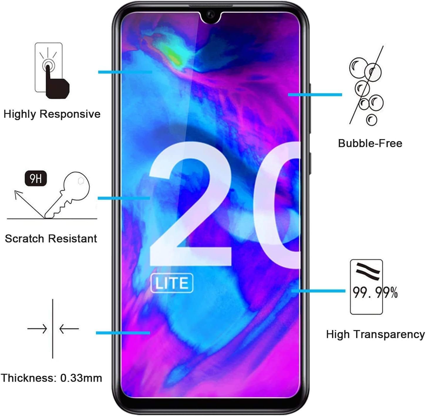 - Lot de 2 Verre Trempé Honor 20 Lite, Honor 20i. Très grande dureté: résiste aux égratignures jusqu’à à 9H . Haute-réponse et une grande transparence.