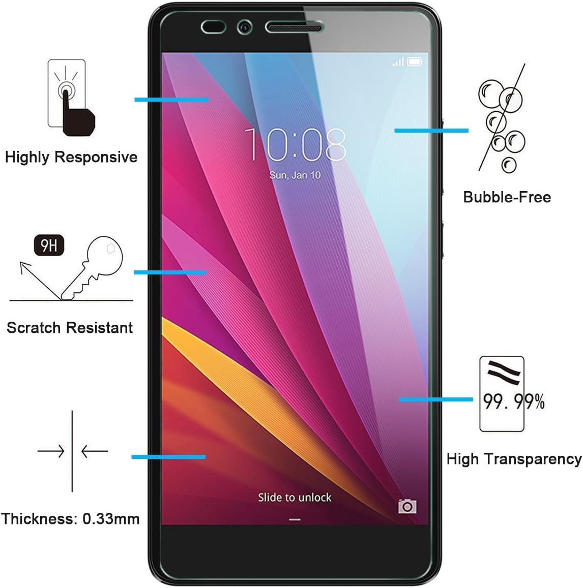 - Lot de 2 Verre Trempé Huawei Honor 5X Très grande dureté: résiste aux égratignures jusqu’à 9H . Haute-réponse et une grande transparence.