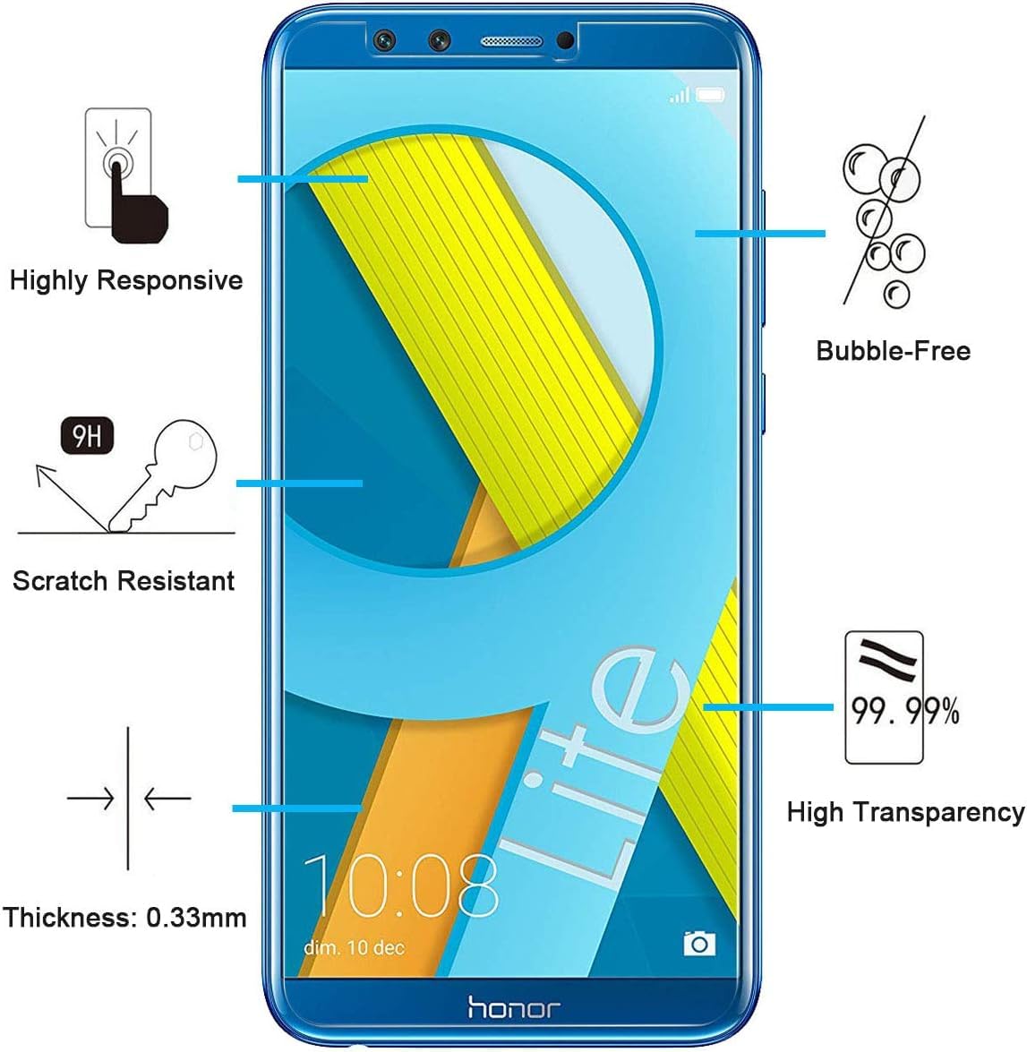 • Lot de 3 Verre Trempé Honor 9 Lite, Très grande dureté: résiste aux égratignures jusqu’à 9H . Haute-réponse et une grande transparence.