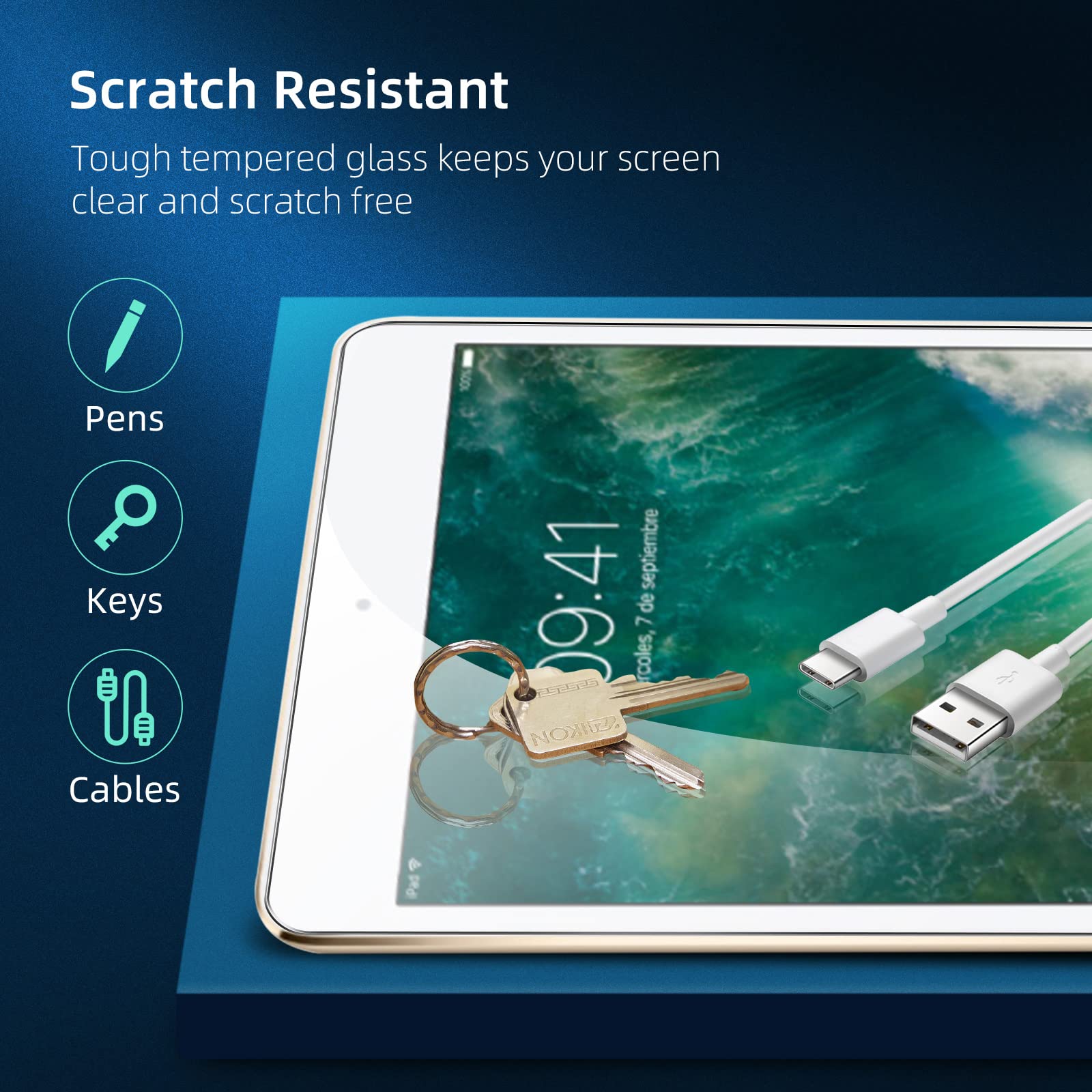 • Fabriqué en verre trempé premium haute qualité avec 0,33 mm épaisseur avec les bordures arrondis. Solution idéale d’anti-casse: Extrêmement haute dureté, protège l’écran du tablette des chocs et des dommages accidentels.