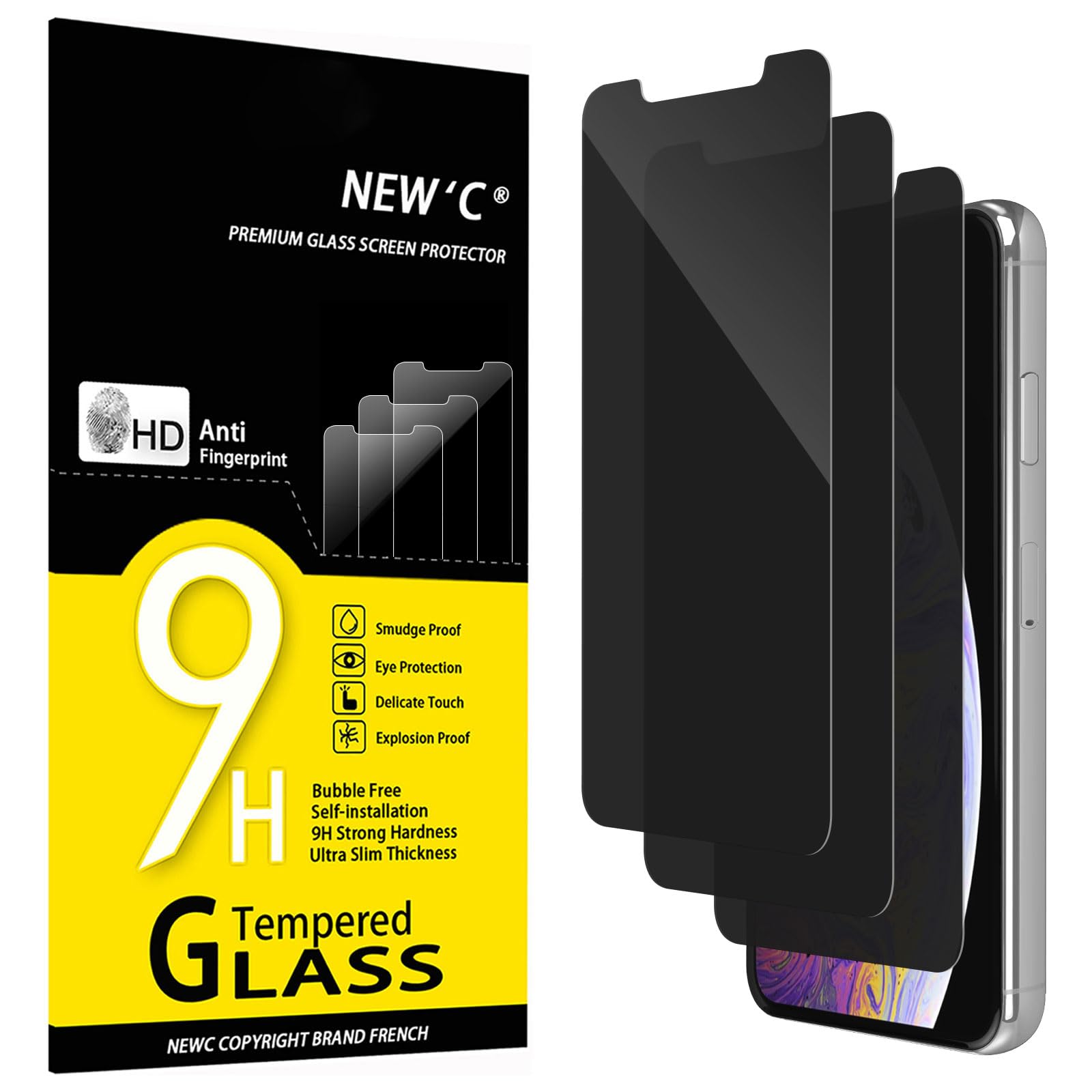 NEW’C Lot de 3, Verre Trempé Anti-Espion pour iPhone 11 Pro Max, iPhone XS Max (6,5 Pouces), Angle de Confidentialité 28 Degrés Amélioré, Dureté Ultra-Résistante 9H, Sans Bulles