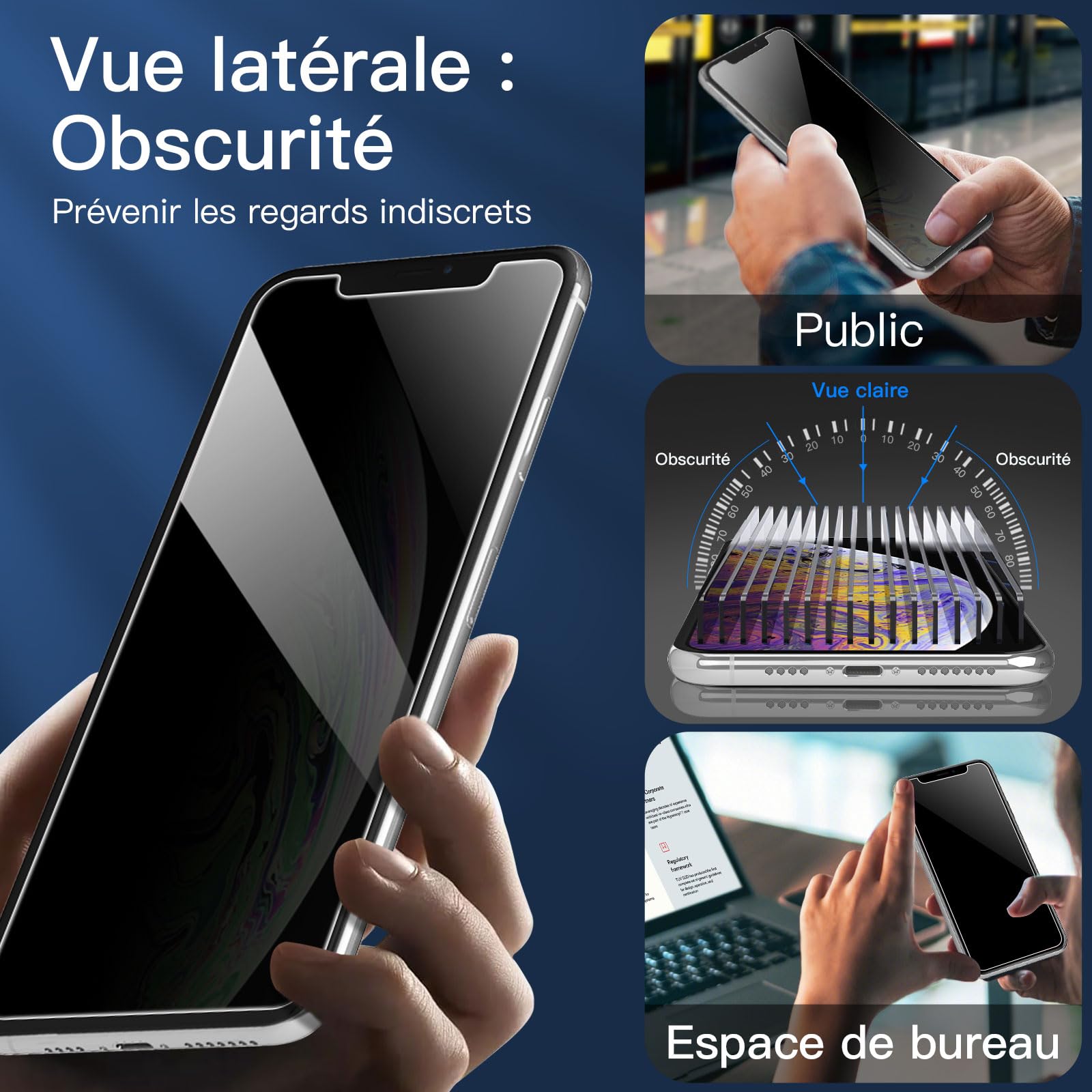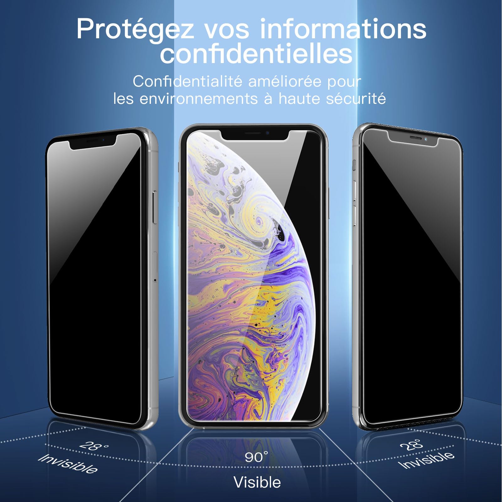 • Lot de 3 Verres Trempés Anti-Espion pour iPhone 11 Pro Max/iPhone XS Max (6,7 Pouces). Dureté 9H, résistance aux raillures, Confidentialité améliorée pour les environnements à haute sécurité.