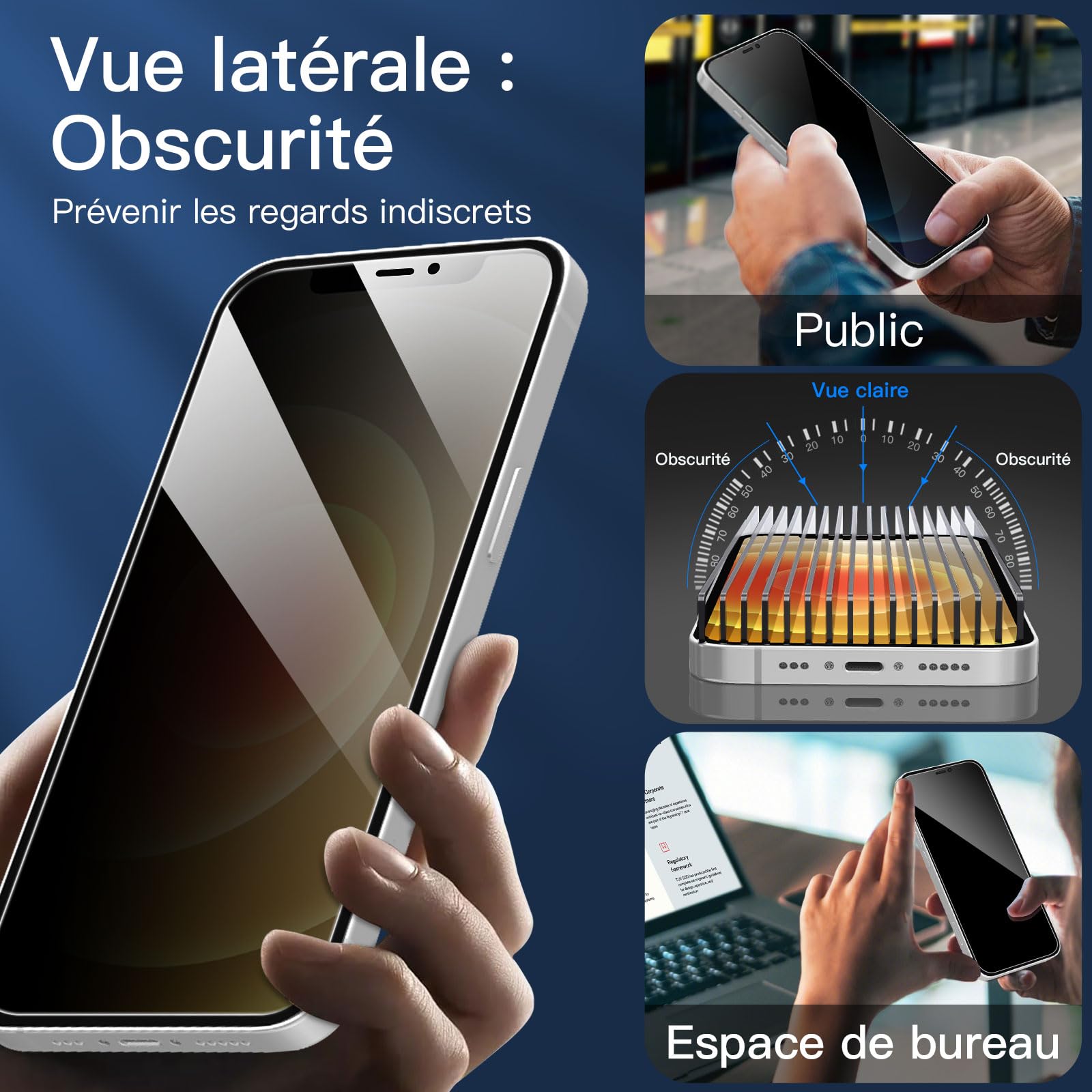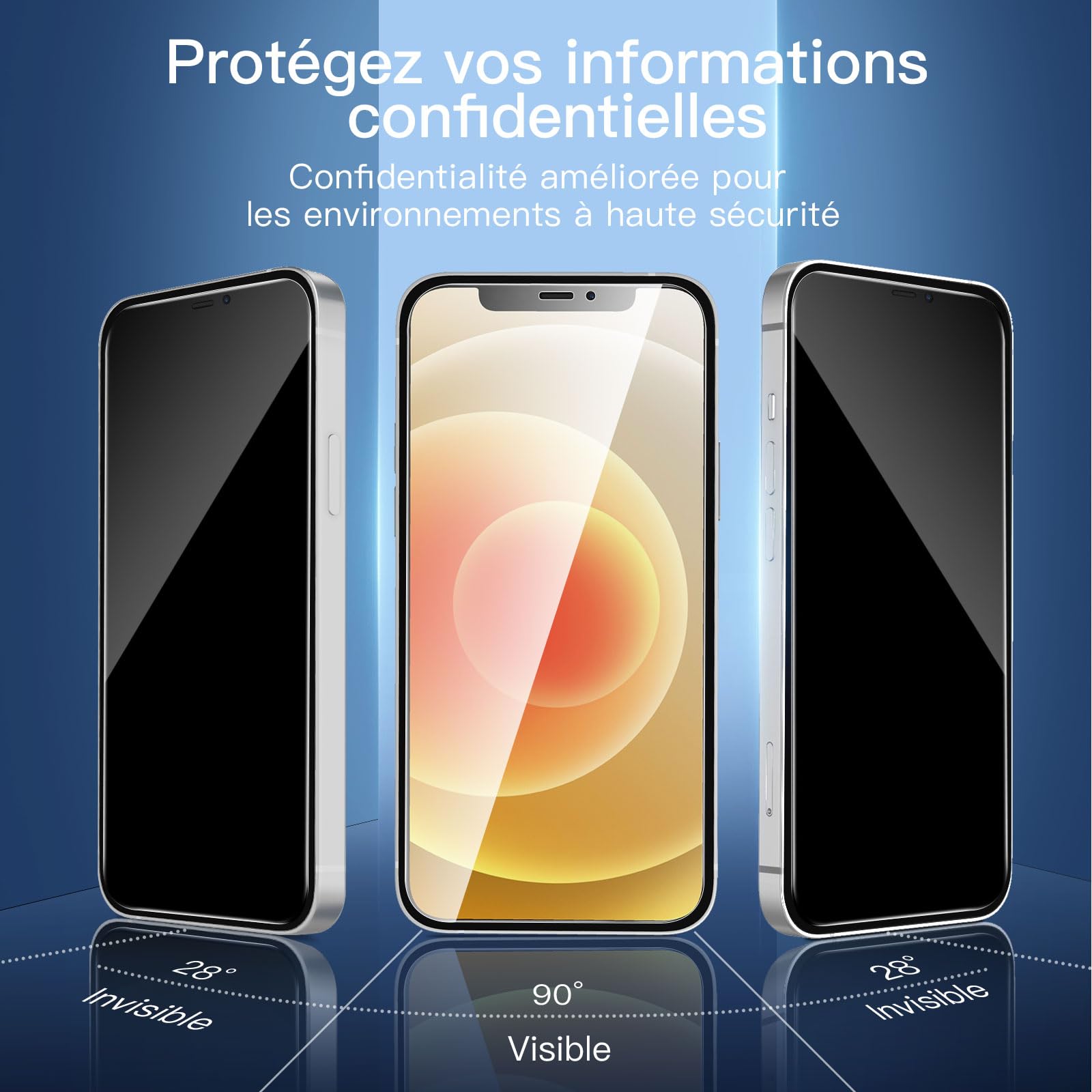 - Lot de 3 Verres Trempés Anti-Espion pour iPhone 12/12 Pro (6,1 Pouces). Dureté 9H, résistance aux raillures, Confidentialité améliorée pour les environnements à haute sécurité.