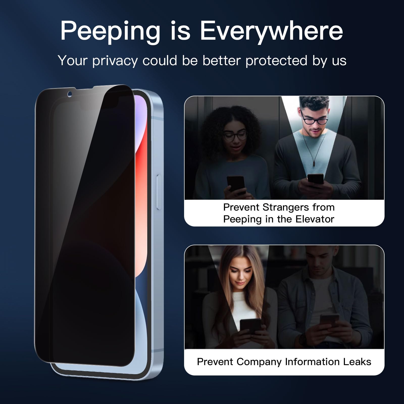 Kit de protection d’écran anti-espion en verre trempé pour iPhone 14, offrant une confidentialité améliorée et une protection robuste.