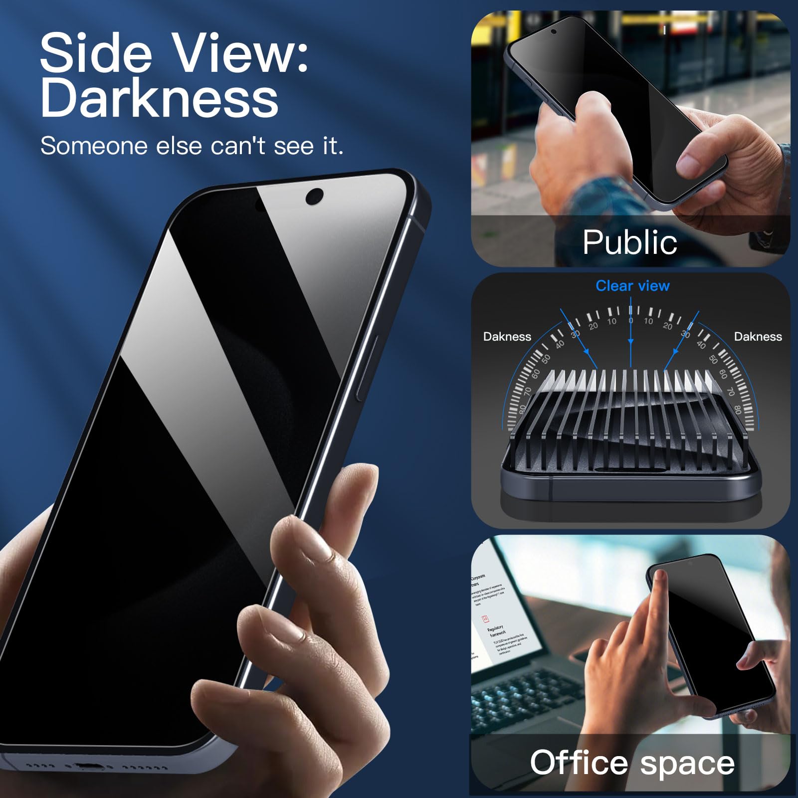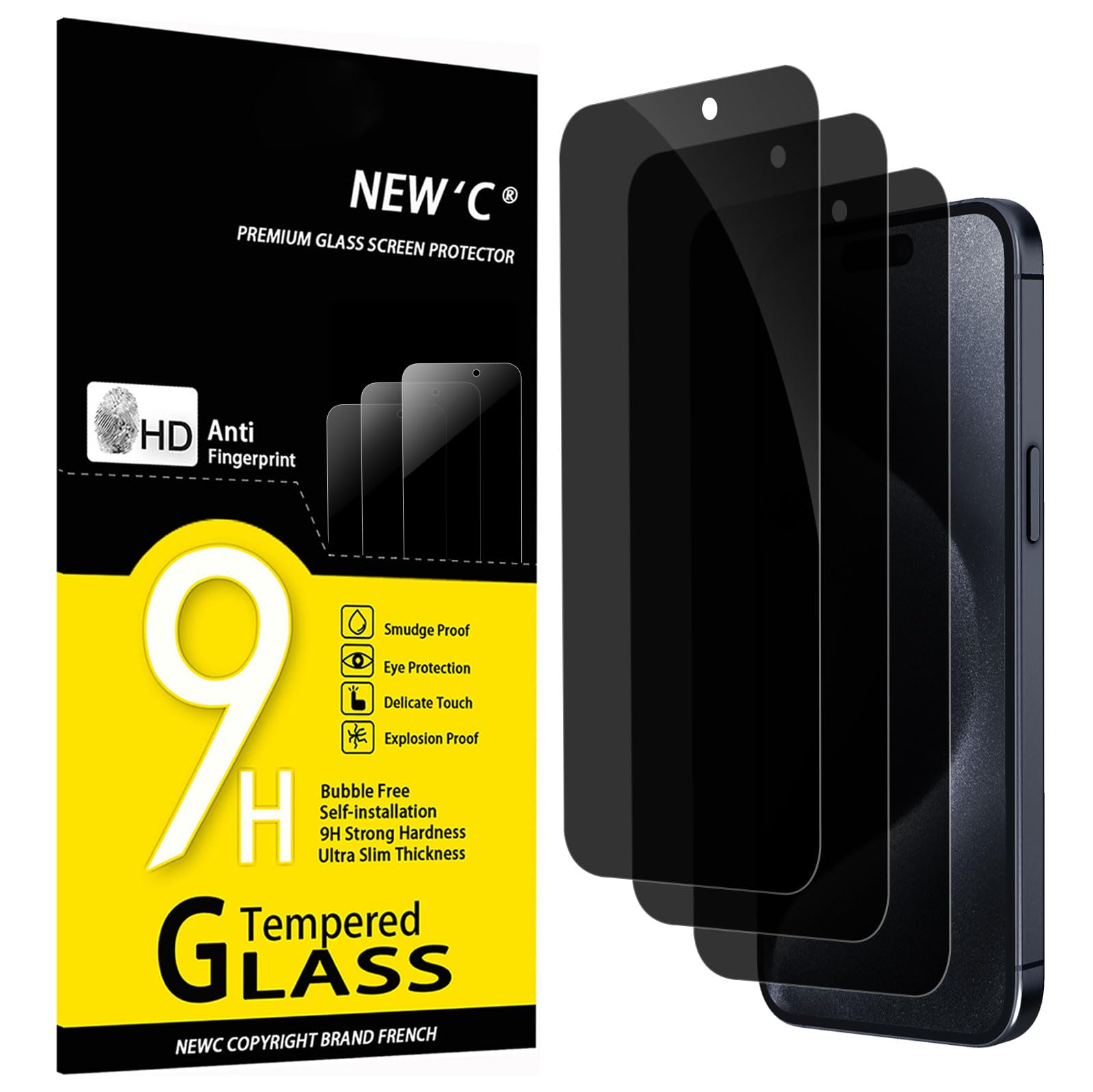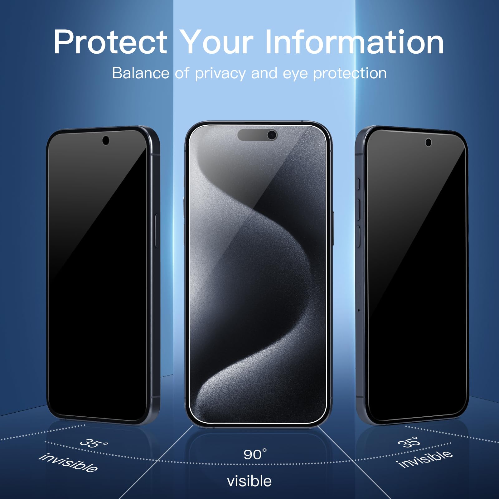 - Lot de 3 Verres Trempés Anti-Espion pour iPhone 15 / 15 Pro (6,1 Pouces). Dureté 9H, résistance aux raillures, Équilibre entre la vie privée et la protection des yeux.