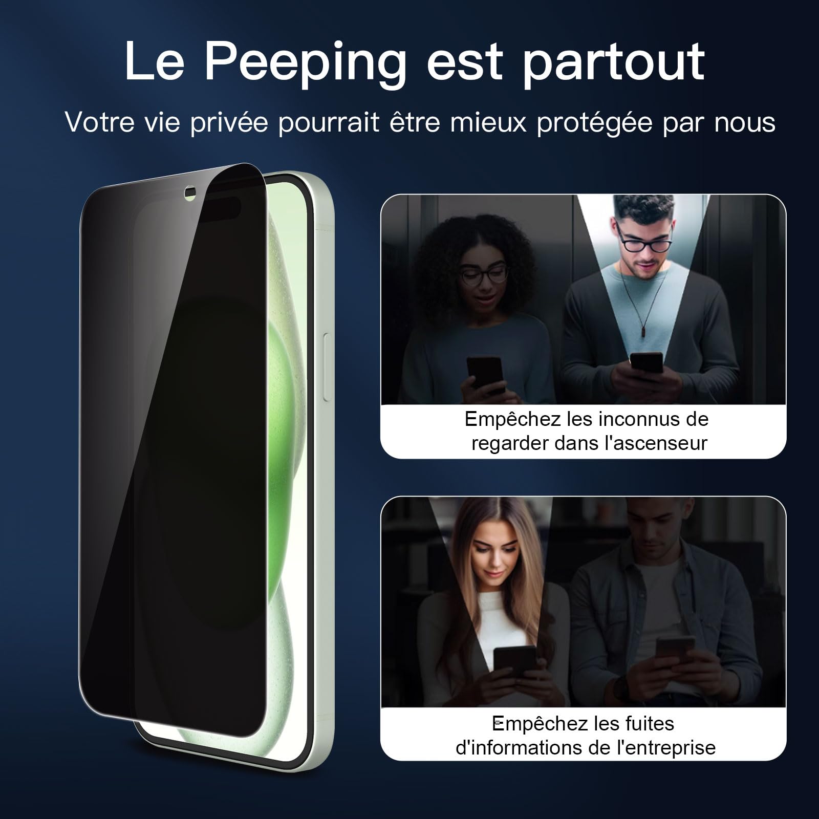 • Contenu : 2* Verre Trempé écran Protecteur anti-espion, 2* Caméra Lentille Protecteur pour iPhone 15 Plus (6,7 Pouces) et avec un outil d’installation facile. Une double protection avant et arrière du téléphone.