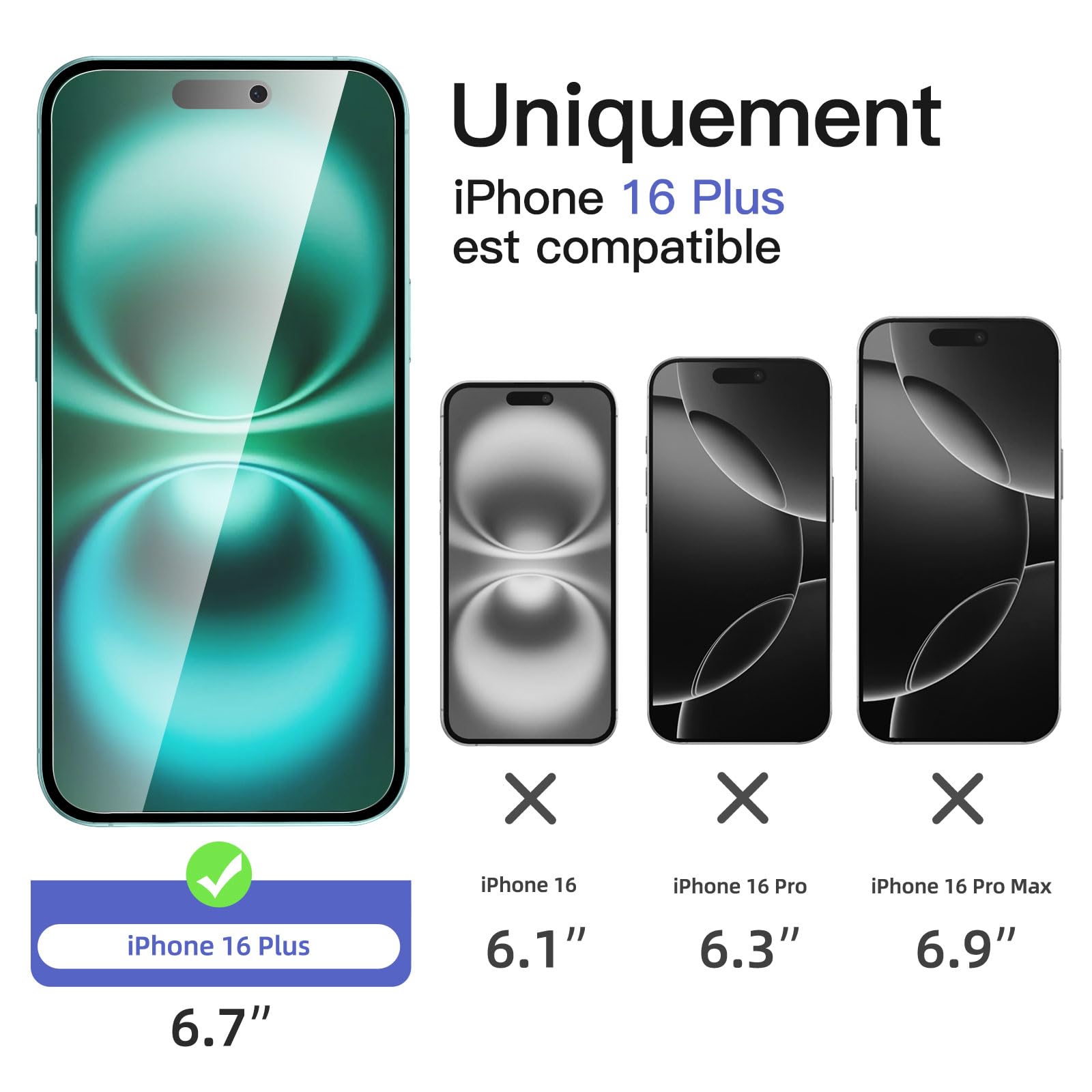 | Modèles compatibles | iPhone 16 Plus (6,7 pouces) |