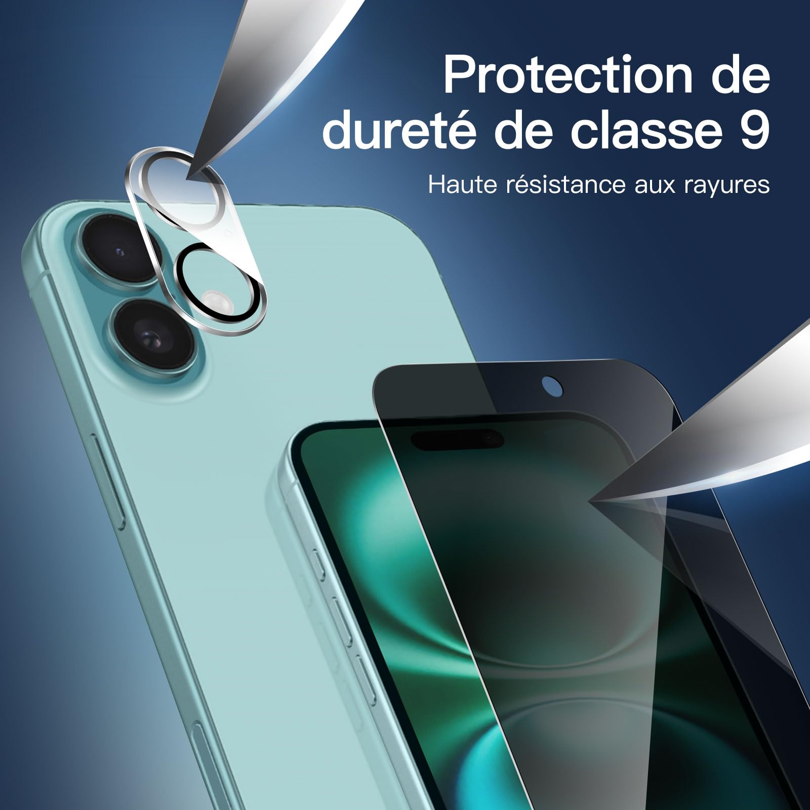 - Contenu : 3* Verre Trempé écran Protecteur anti-espion, 3* Caméra Lentille Protecteur pour iPhone 16 Plus (6,7 Pouces) et avec un outil d’installation facile. Une double protection avant et arrière du téléphone.