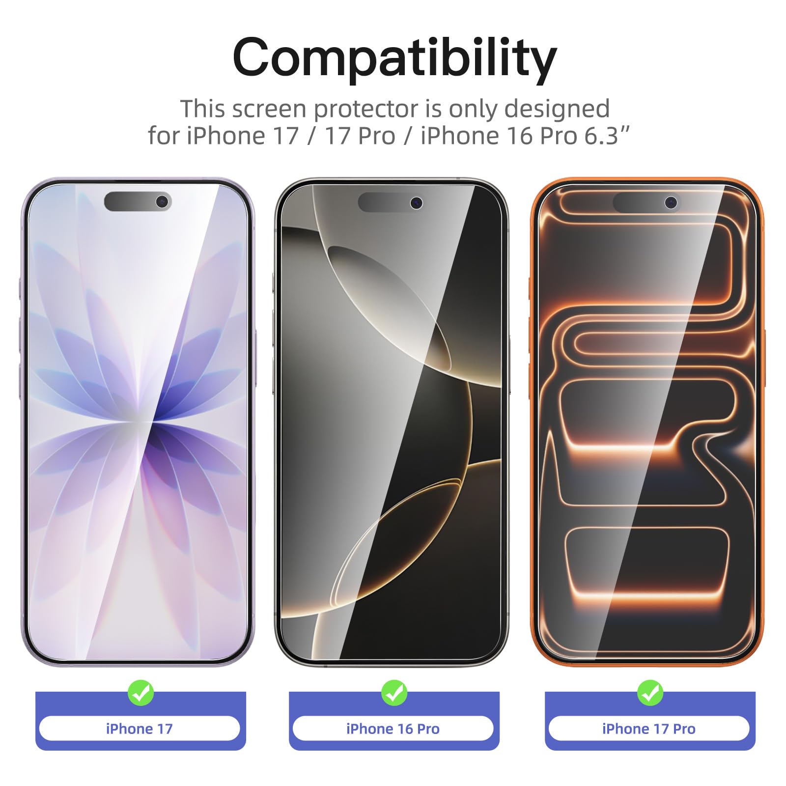 R : Oui, ce Protection d’écran Verre trempé iPhone 17 / iPhone 17 Pro / iPhone 16 Pro est parfaitement compatible avec : iPhone 17, iPhone 17 Pro, iPhone 16 Pro.