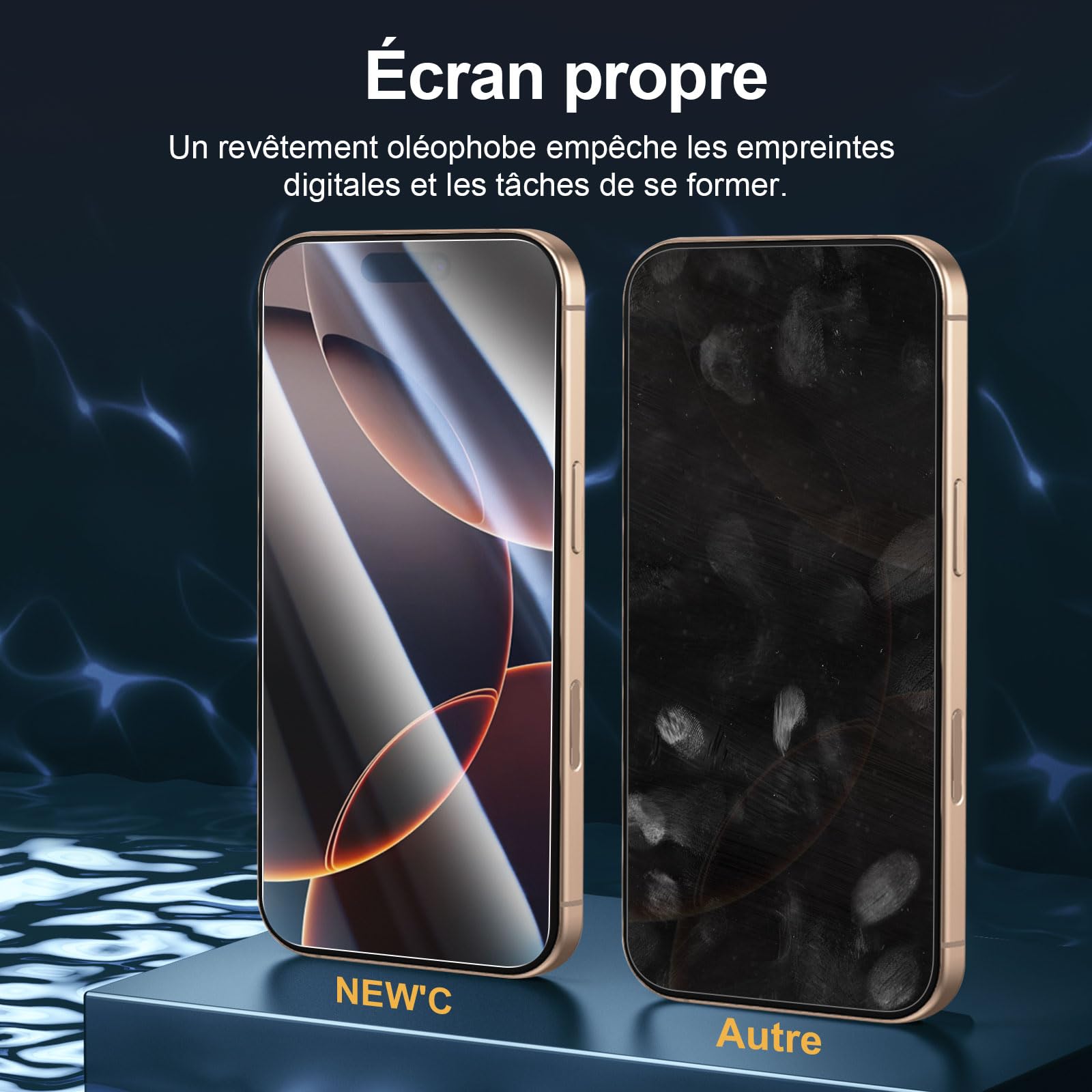 - NEW’C Protection écran en Verre Trempé iPhone 17, 17 Pro, iPhone 16 Pro (6,3 Pouces). Sensibilité tactile conservée : un revêtement adhésif de silicium qui rend l’installation facile et durable tout en préservant les qualités tactiles du téléphone.