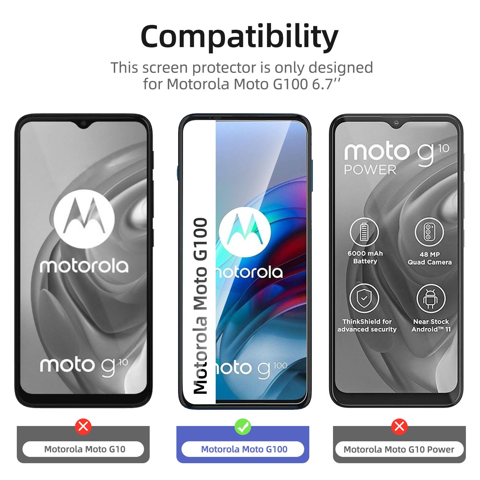 - Lot de 3 Verre Trempé Motorola Moto G100. Très grande dureté: résiste aux égratignures jusqu’à 9H. Haute-réponse et haute transparence.