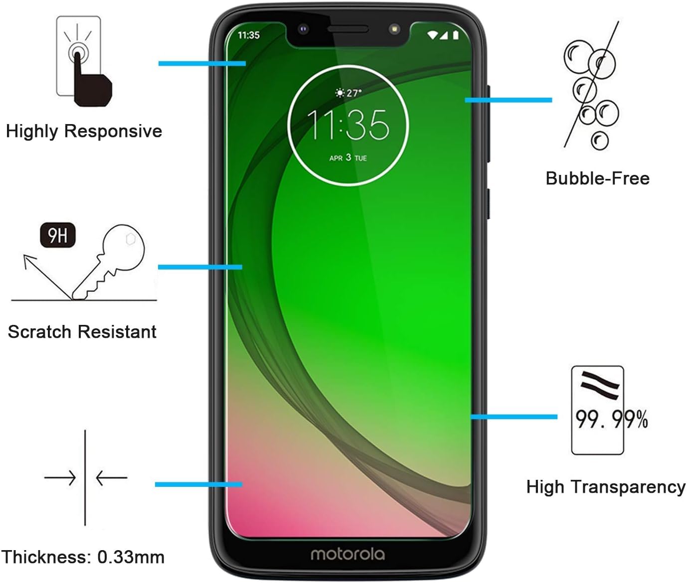 - Lot de 3 Verre Trempé Motorola Moto G7 Play, très grande dureté: résiste aux égratignures jusqu’à 9H. Haute-réponse et une grande transparence.