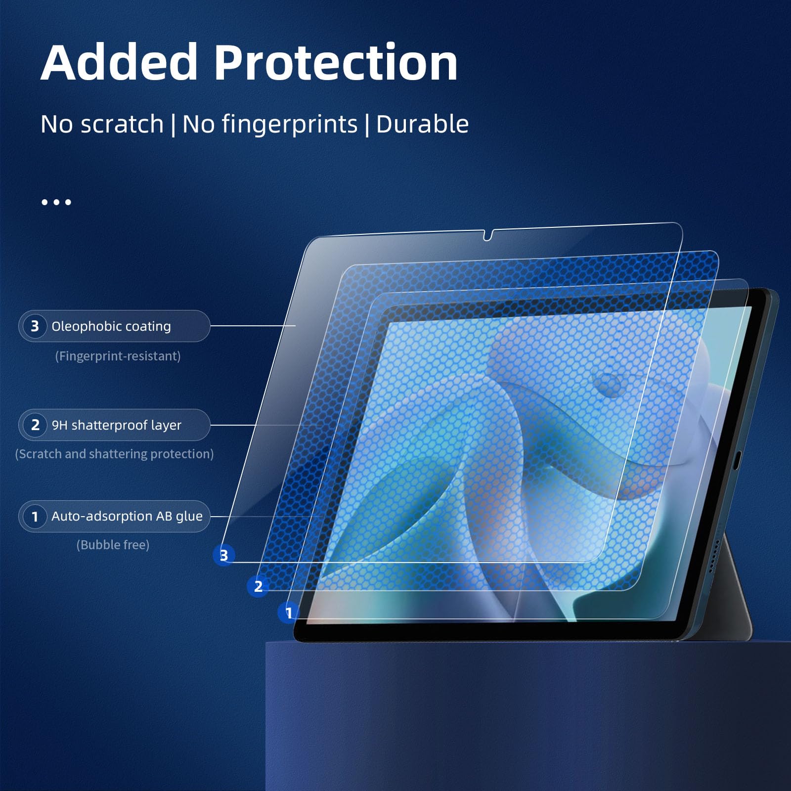 • Installation sans poussière, sans empreintes digitales, facile d’une simple pression, sans bulles.Oléophobe: il a un revêtement oléophobique qui empêche les empreintes digitales et d’autres contaminants et rend le film facile à nettoyer.