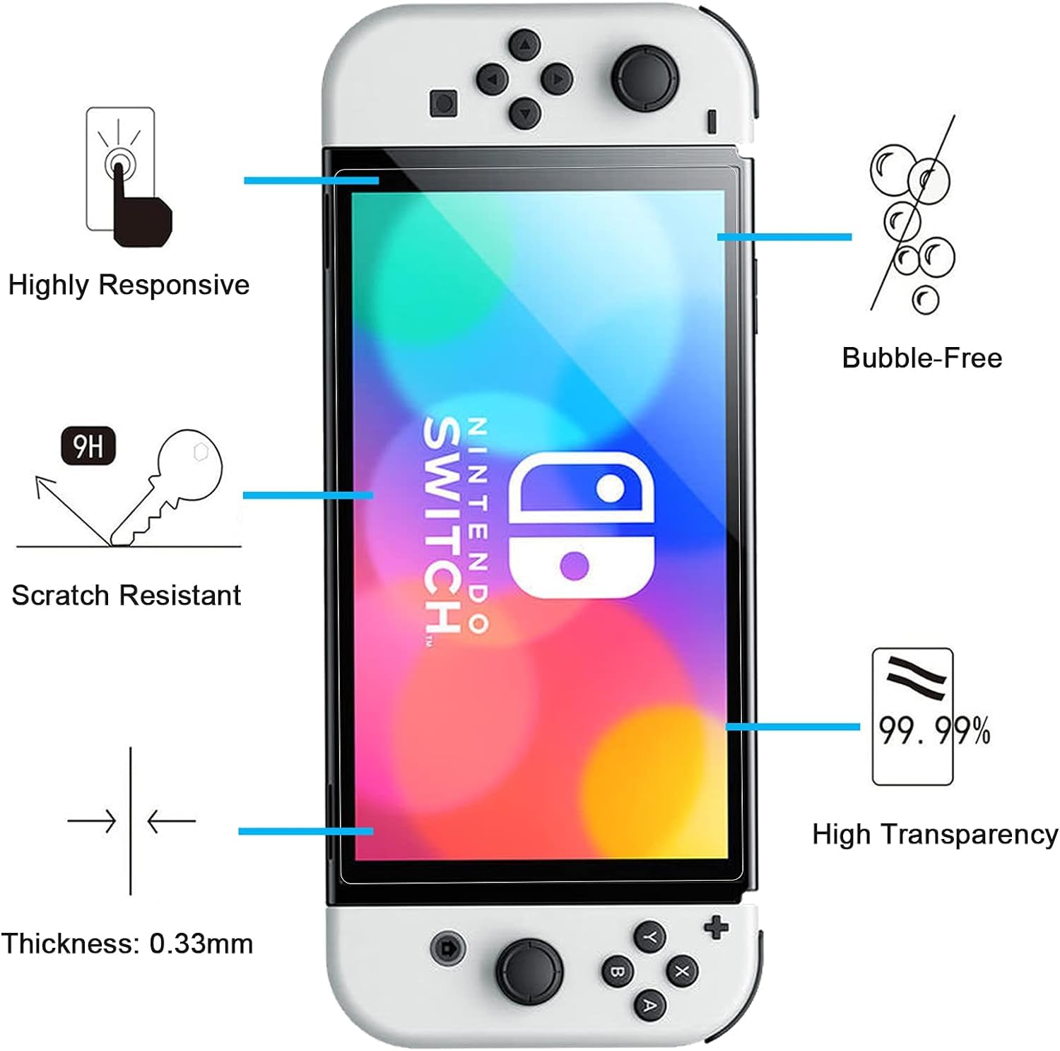 • Lot de 3 Verre Trempé Nintendo Switch (modèle OLED). Très grande dureté: résiste aux égratignures jusqu’à 9H. Haute-réponse et haute transparence.