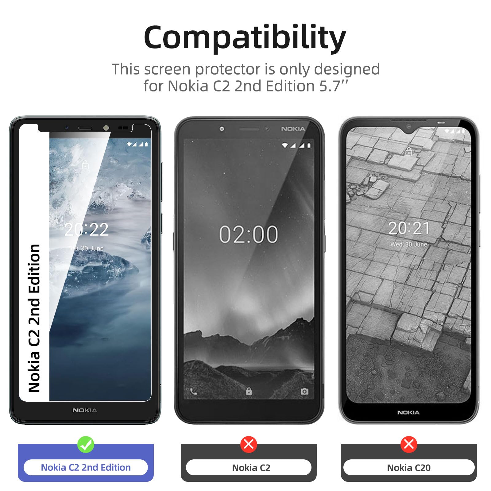 - Lot de 3 Verre Trempé Nokia C2 2nd Edition. Très grande dureté: résiste aux égratignures jusqu’à 9H. Haute-réponse et haute transparence.