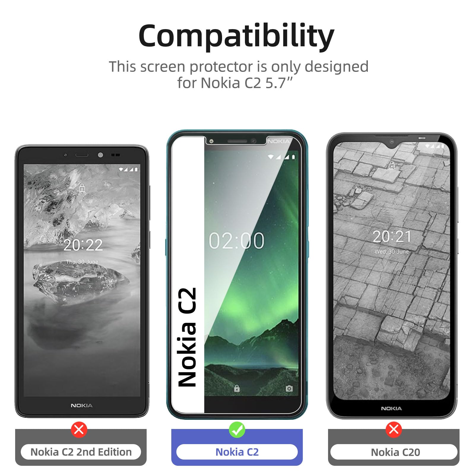 Compatibilité confirmée : Ce produit est spécialement conçu pour Nokia C2.