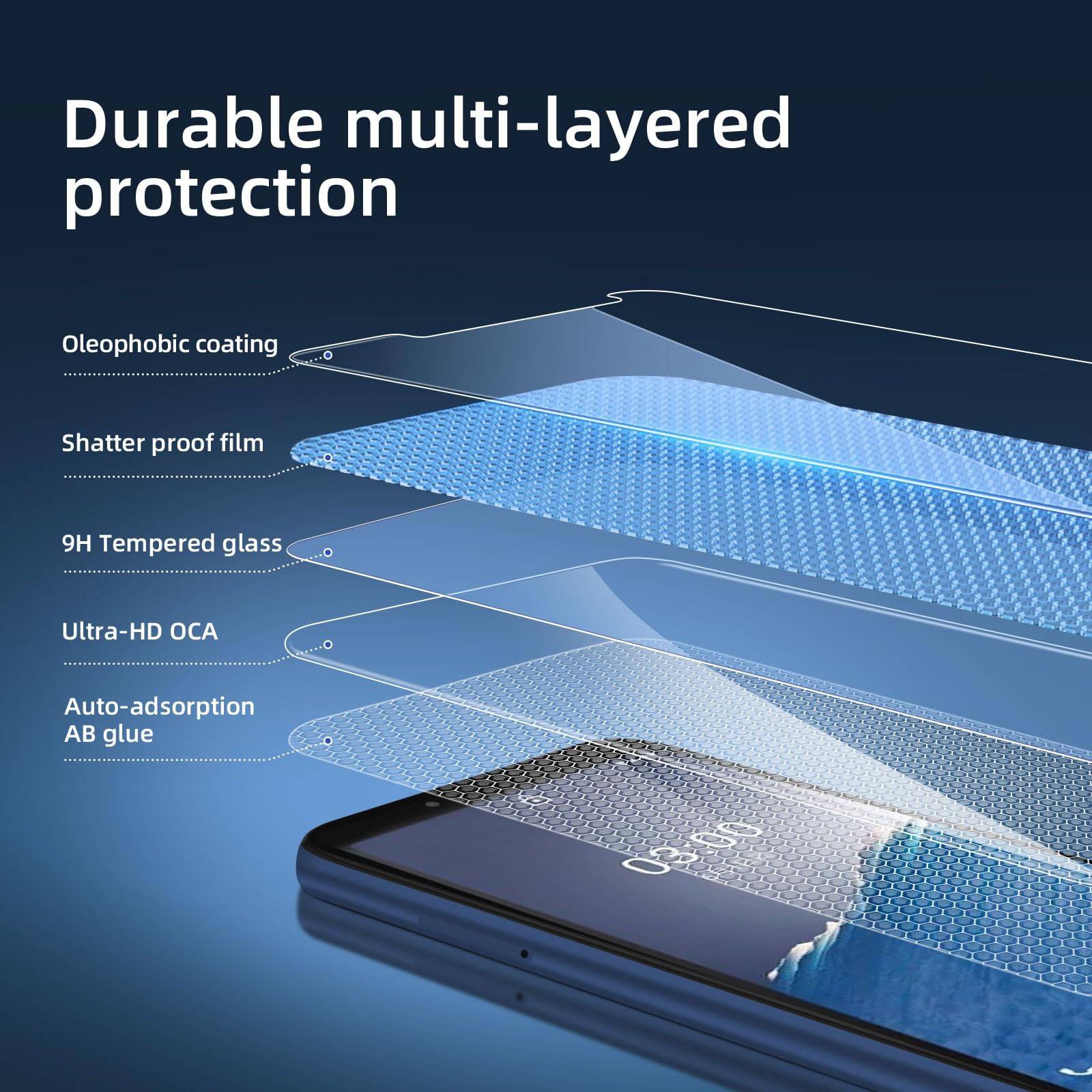 - Installation sans poussière, sans empreintes digitales, facile d’une simple pression, sans bulles.Oléophobe: il a un revêtement oléophobique qui empêche les empreintes digitales et d’autres contaminants et rend le film facile à nettoyer.