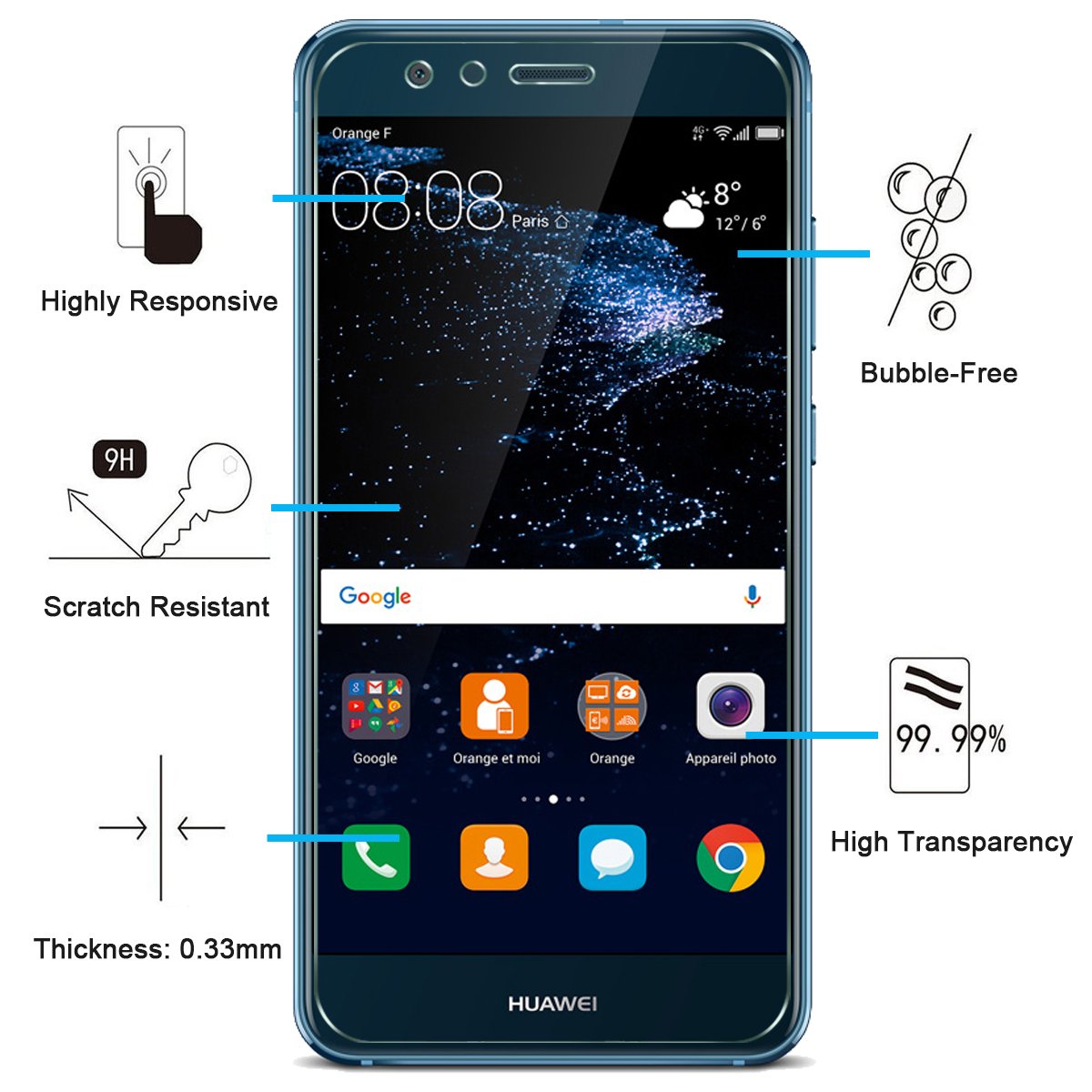- Lot de 3 Verre Trempé Huawei P10 Lite. Très grande dureté: résiste aux égratignures jusqu’à 9H. Haute-réponse et haute transparence.