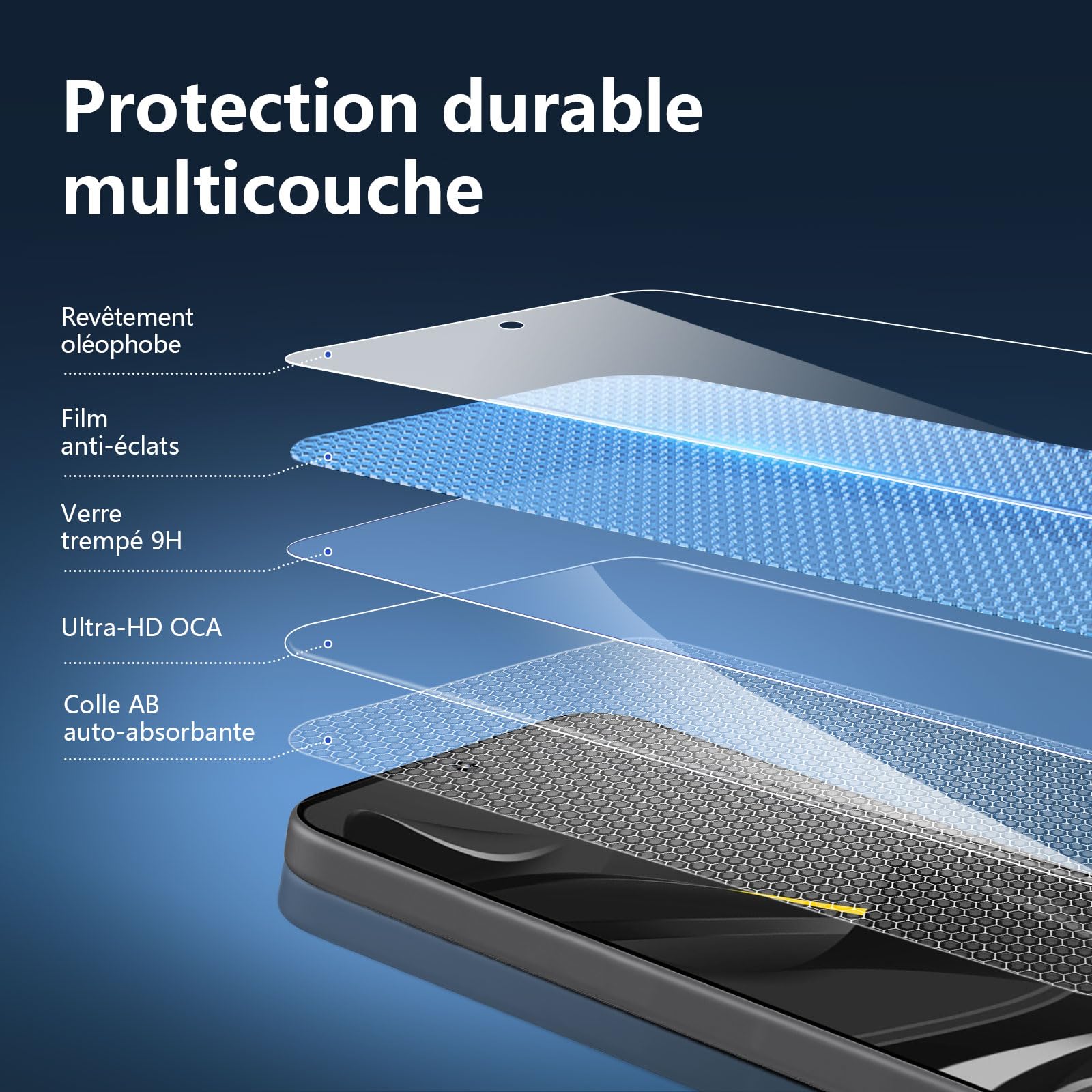 - Installation sans poussière, sans empreintes digitales, facile d’une simple pression, sans bulles. Oléophobe: un revêtement qui empêche les empreintes digitales et d’autres contaminants et rend le verre très facile à nettoyer.