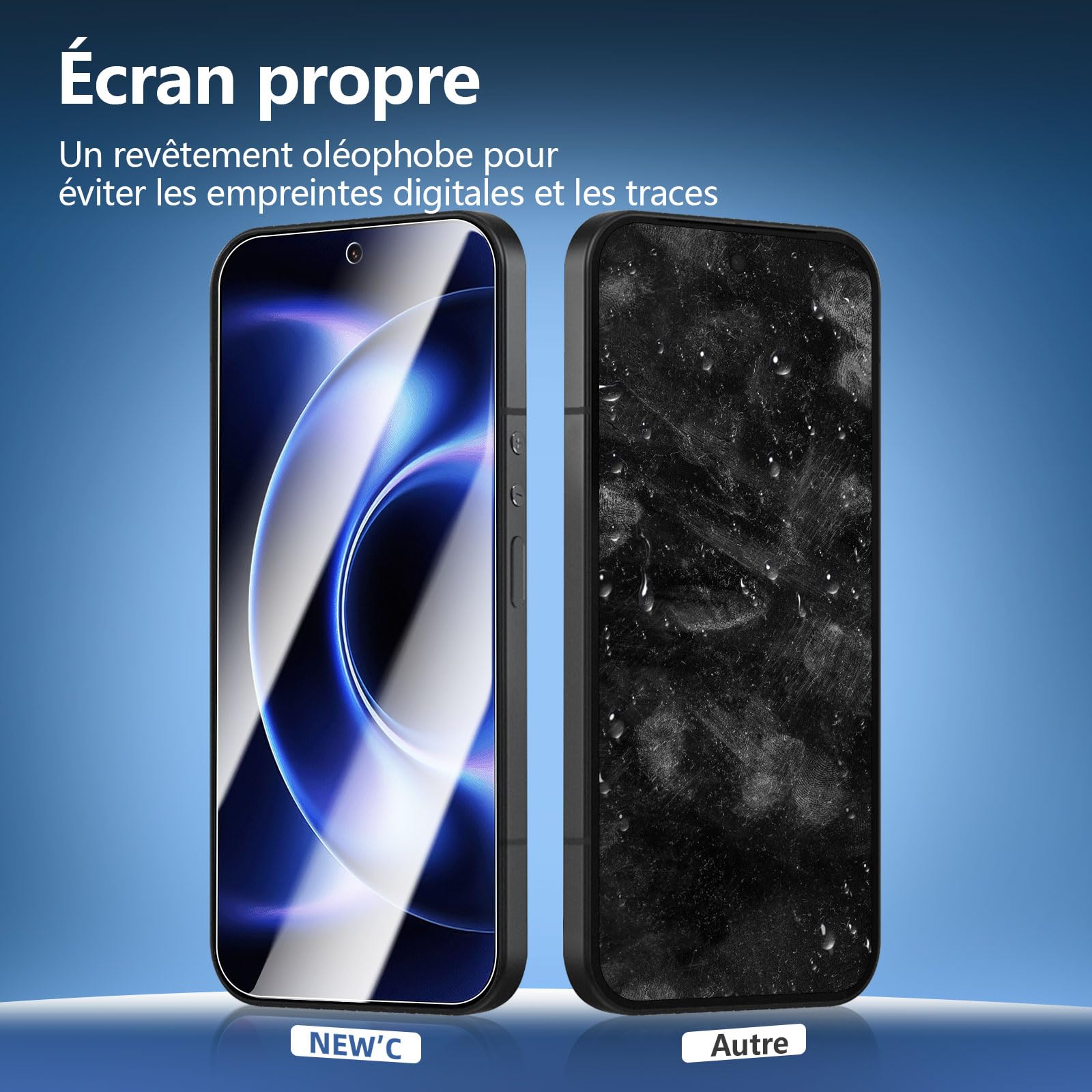 - Installation sans poussière, sans empreintes digitales, facile d’une simple pression, sans bulles. Oléophobe: un revêtement qui empêche les empreintes digitales et d’autres contaminants et rend le verre très facile à nettoyer.