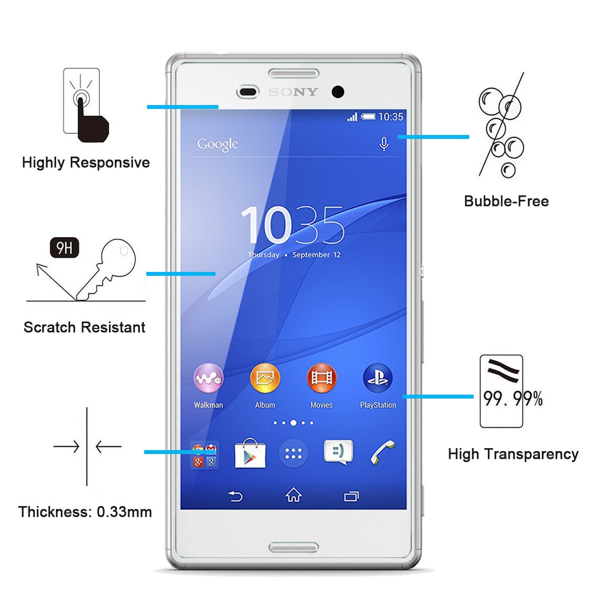 - Lot de 3 Verre Trempé Sony Xperia Z3, Très grande dureté: résiste aux égratignures jusqu’à 9H (plus dur que’un couteau) . Haute-réponse et une grande transparence.