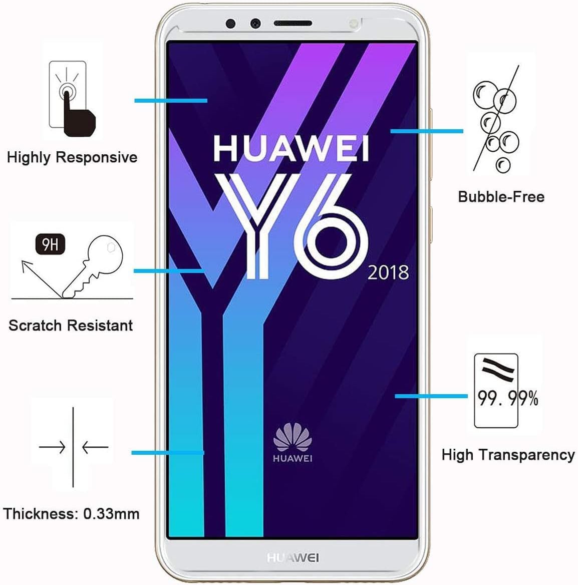 • Lot de 3 Verre Trempé Huawei Y6 2018, Honor 7A, Très grande dureté: résiste aux égratignures jusqu’à 9H . Haute-réponse et une grande transparence.