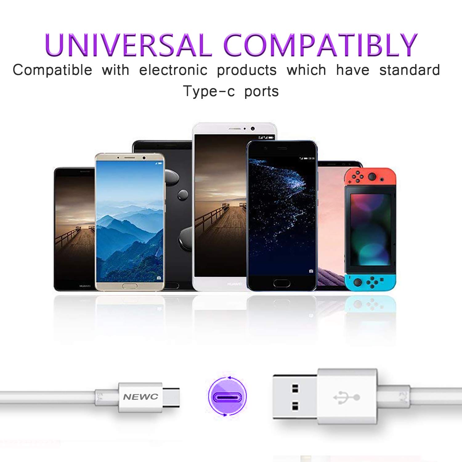 NEW’C Câble USB Type C à USB 3.0 5A, Câble USB C pour Samsung Galaxy S8/S9/S10/S21/S22/S22 Plus, Huawei, Xiaomi, Honor, Nokia, OnePlus, Chargeur Cable USB C Rapide 2M