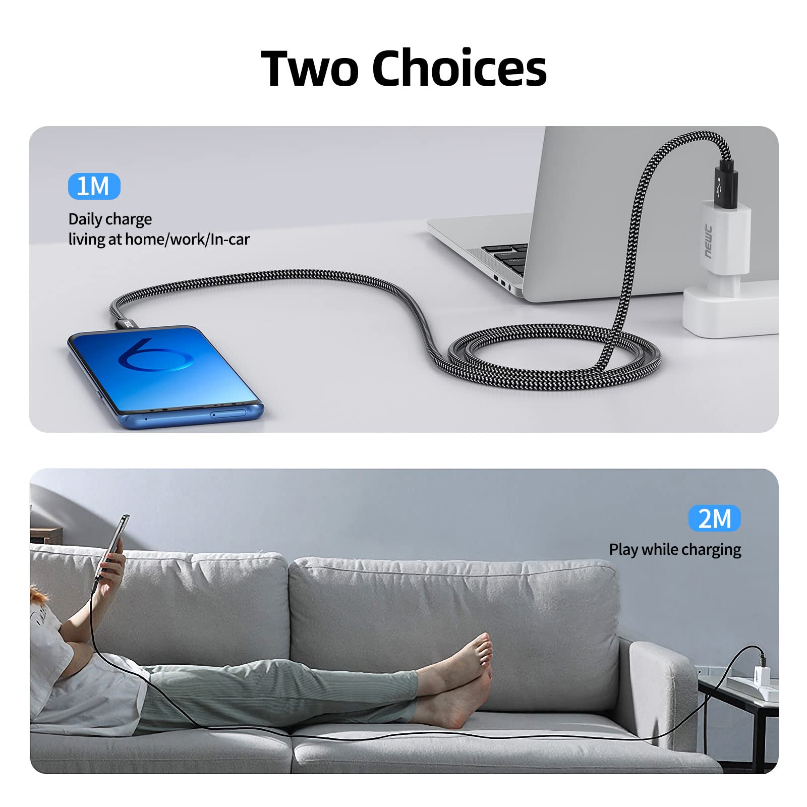 Câble USB C [Lot de 2, 1M+2M] Tressé Noir en Nylon compatible pour Samsung Galaxy S23 S22 S21 S20 S8 S9 S10 A20 A12 A13 A21 A40 M31, Redmi Note 10, OnePlus, Chargeur Cable Rapide